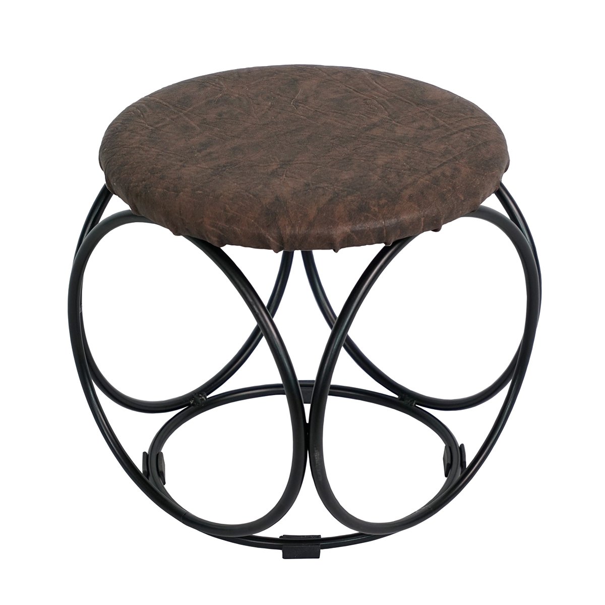 Банкетка «Круглая» Металл черный/Винилискожа коричневый