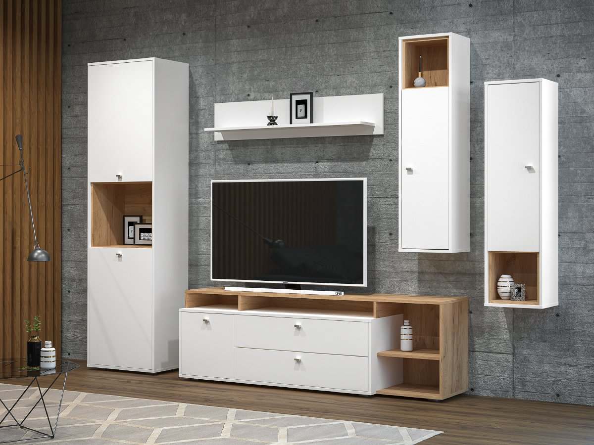 Шкаф навесной 10.63 «Бэль» Белый премиум/Дуб Крафт золотой