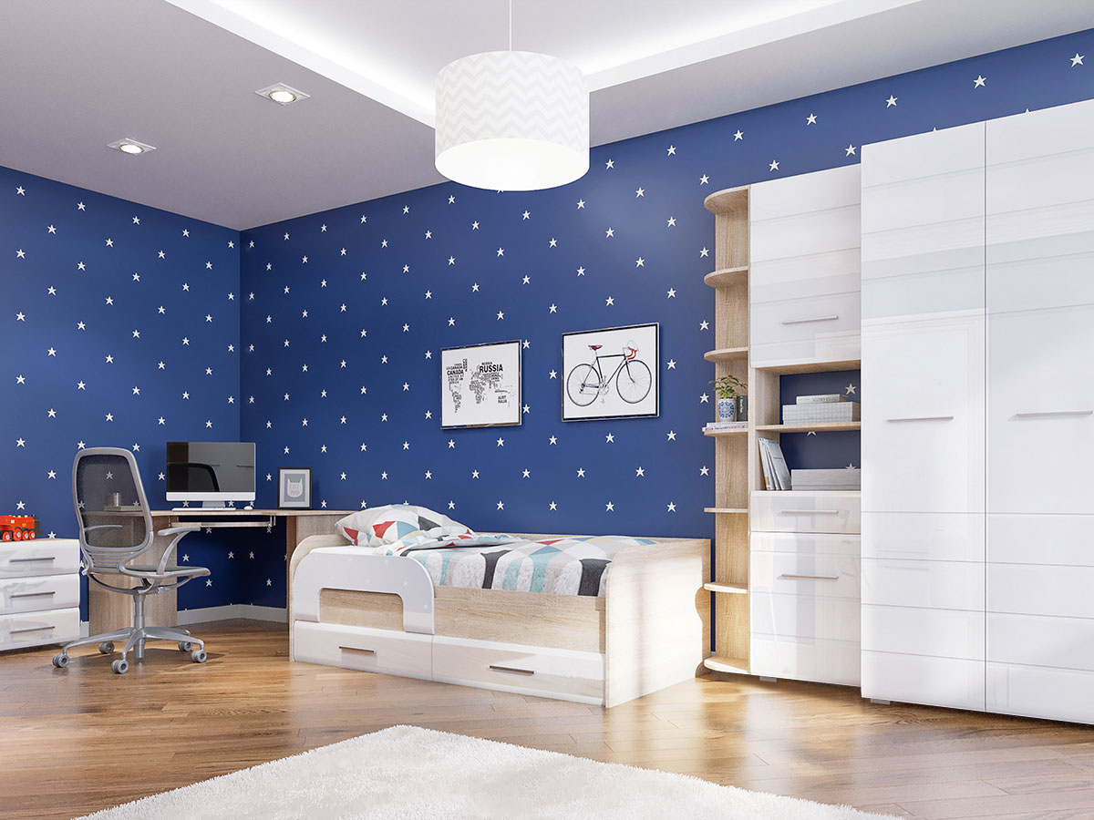 Детская «Инесса New» Белый глянец/Дуб Сонома Вариант 3