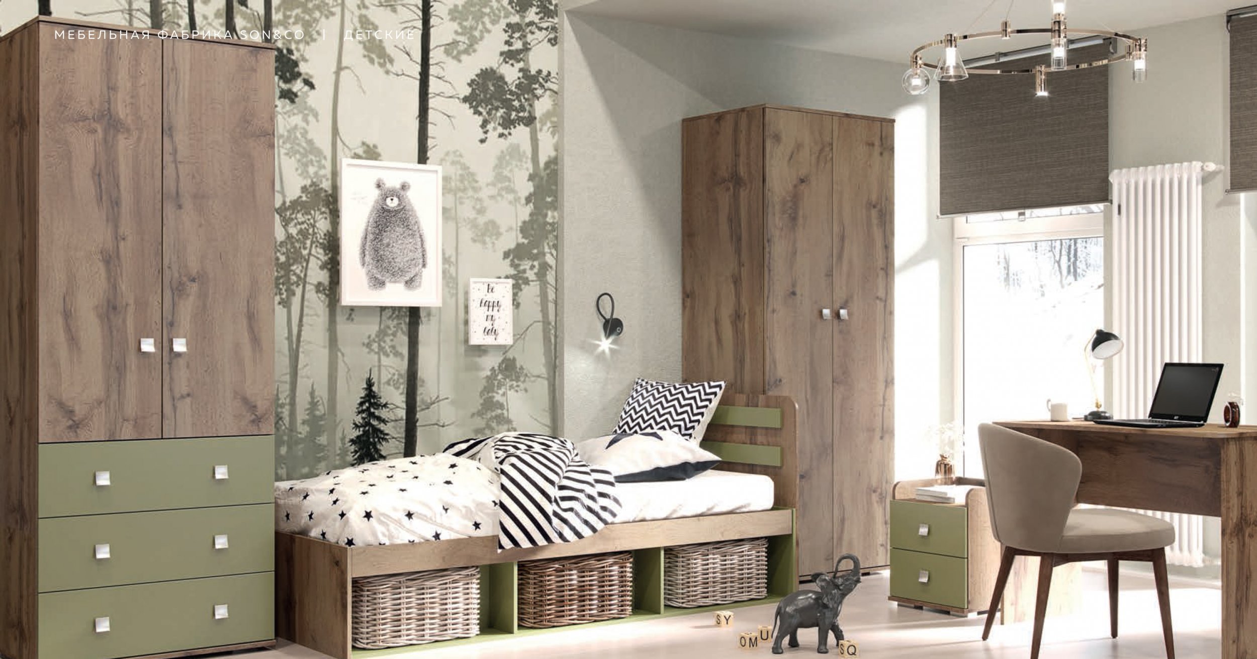 Детский гарнитур «Лего» Дуб Харбор Золотой/Олива