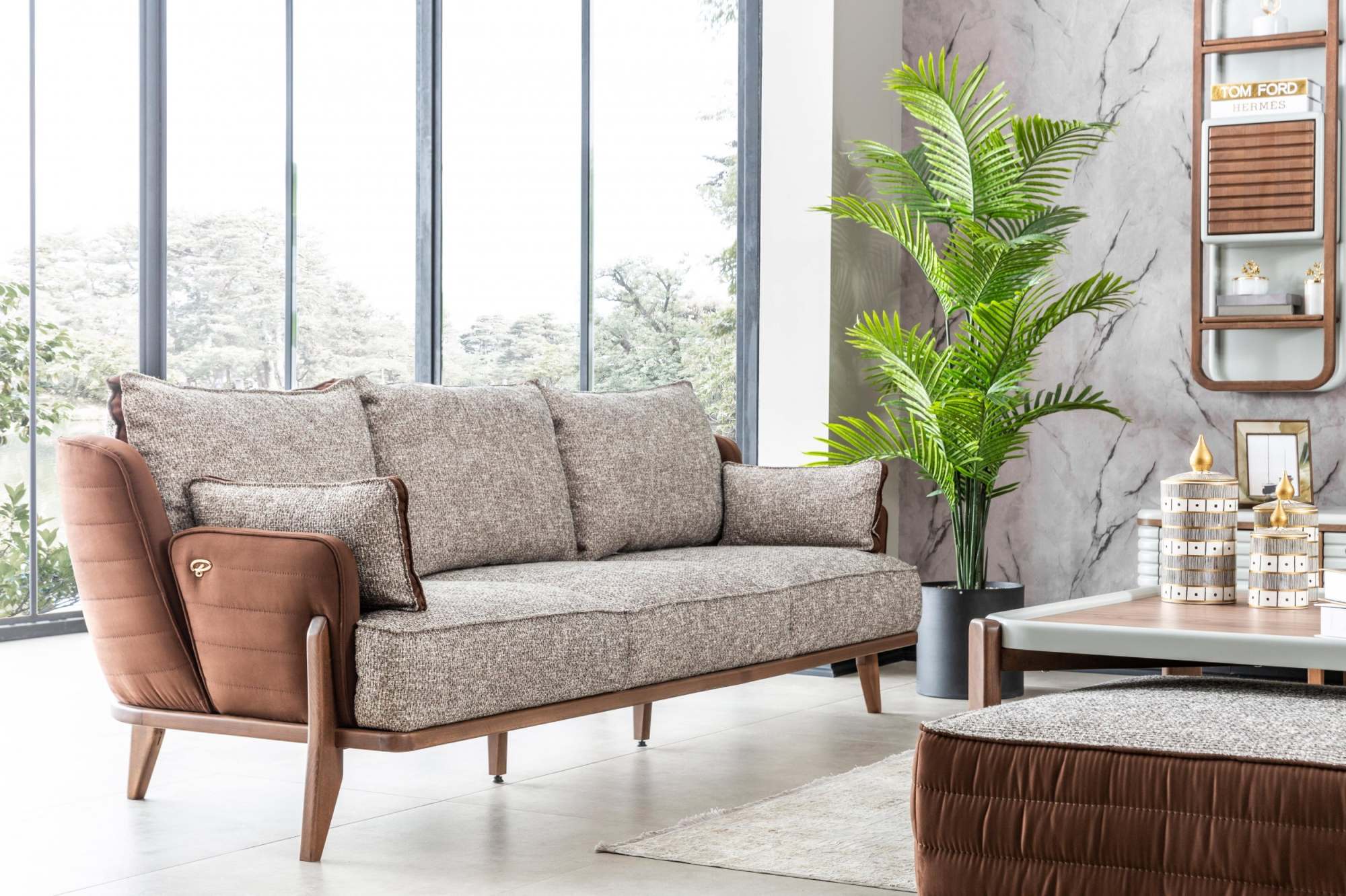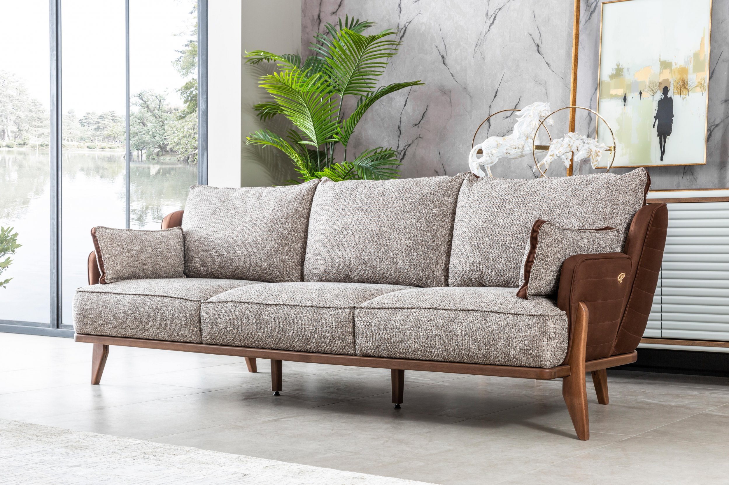 Диван 3х местный «Bentley» без спального места Серый/Коричневый
