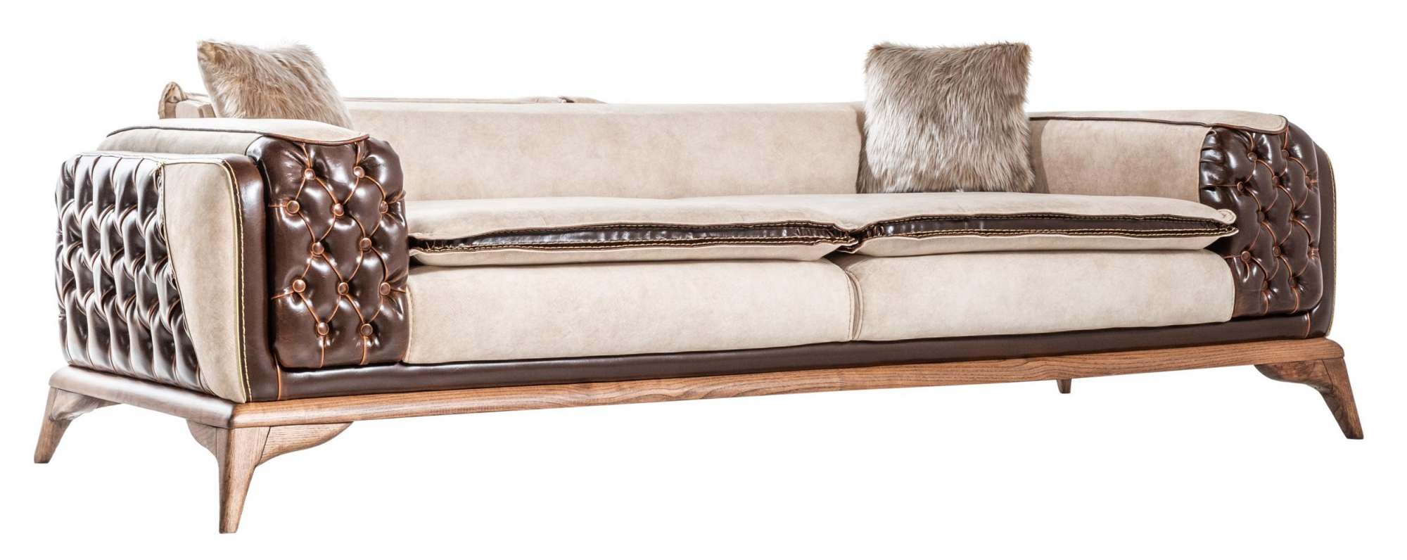 Диван 3х местный «Lotus» без спального места Бежевый/Коричневый