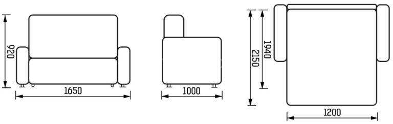 | Длина дивана, мм | 1650 |