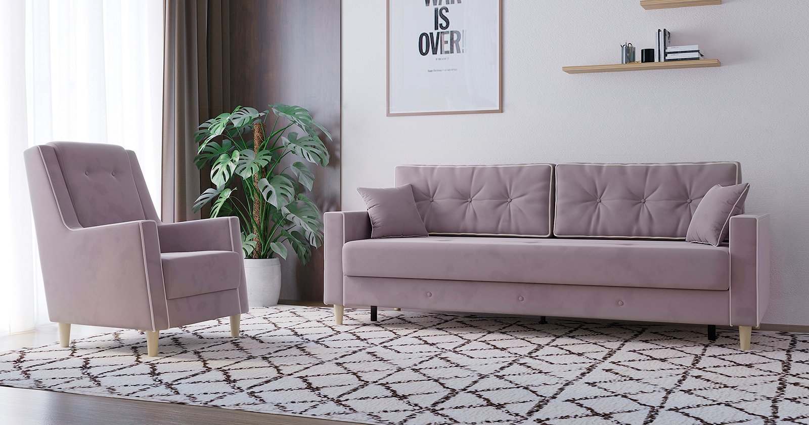 Диван-кровать «Айрин» ТД 322 Велутто 11 пепел розы/Мазератти 02 сливочный