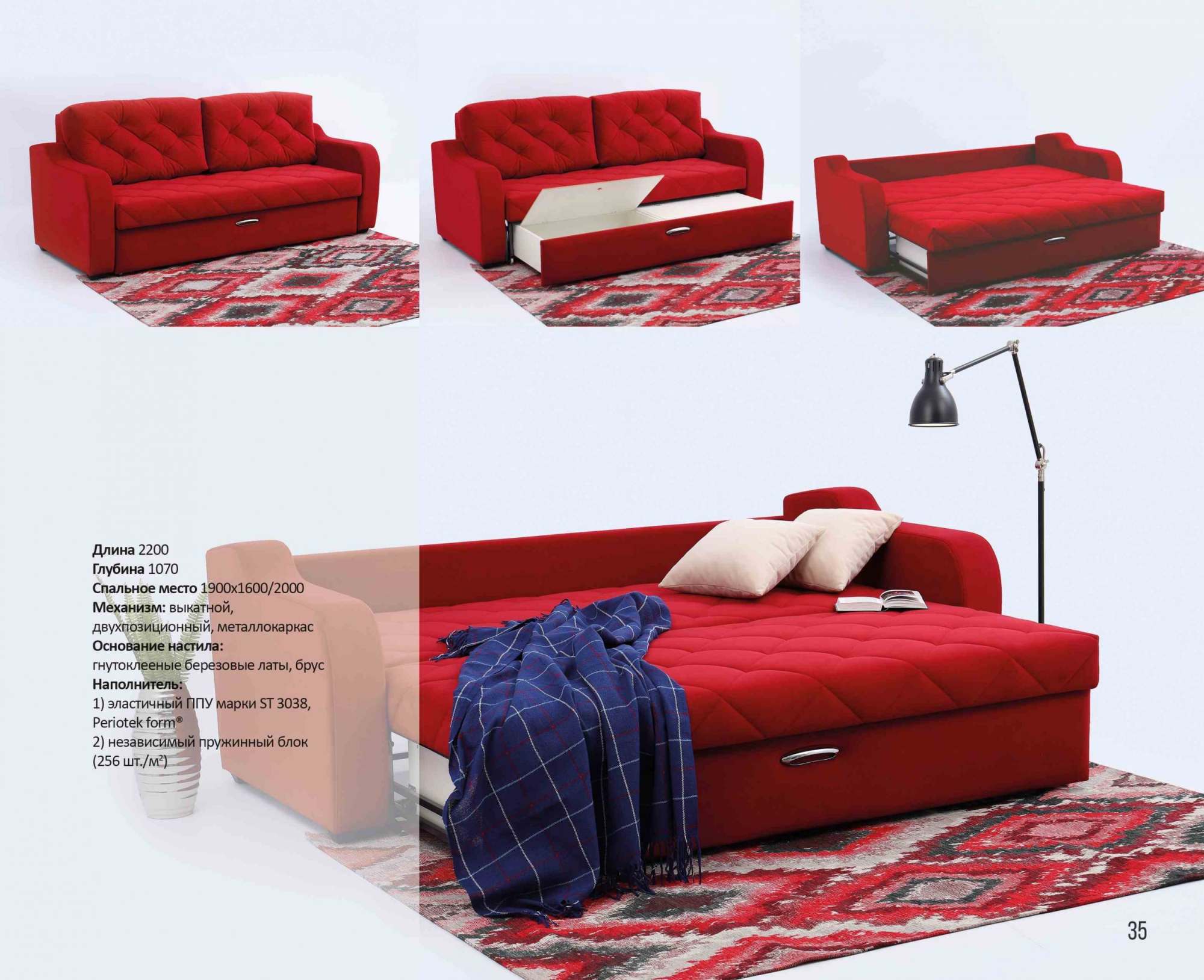 | Комплектация | Мягкий, С подлокотниками, С ящиком для белья |