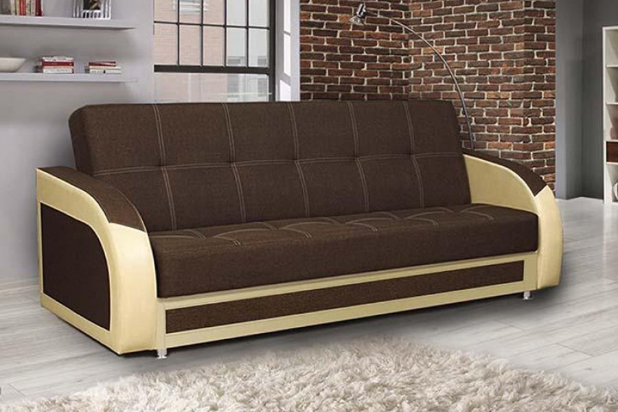 Диван-кровать «Феникс New» Рогожка коричневый/кожзам бежевый