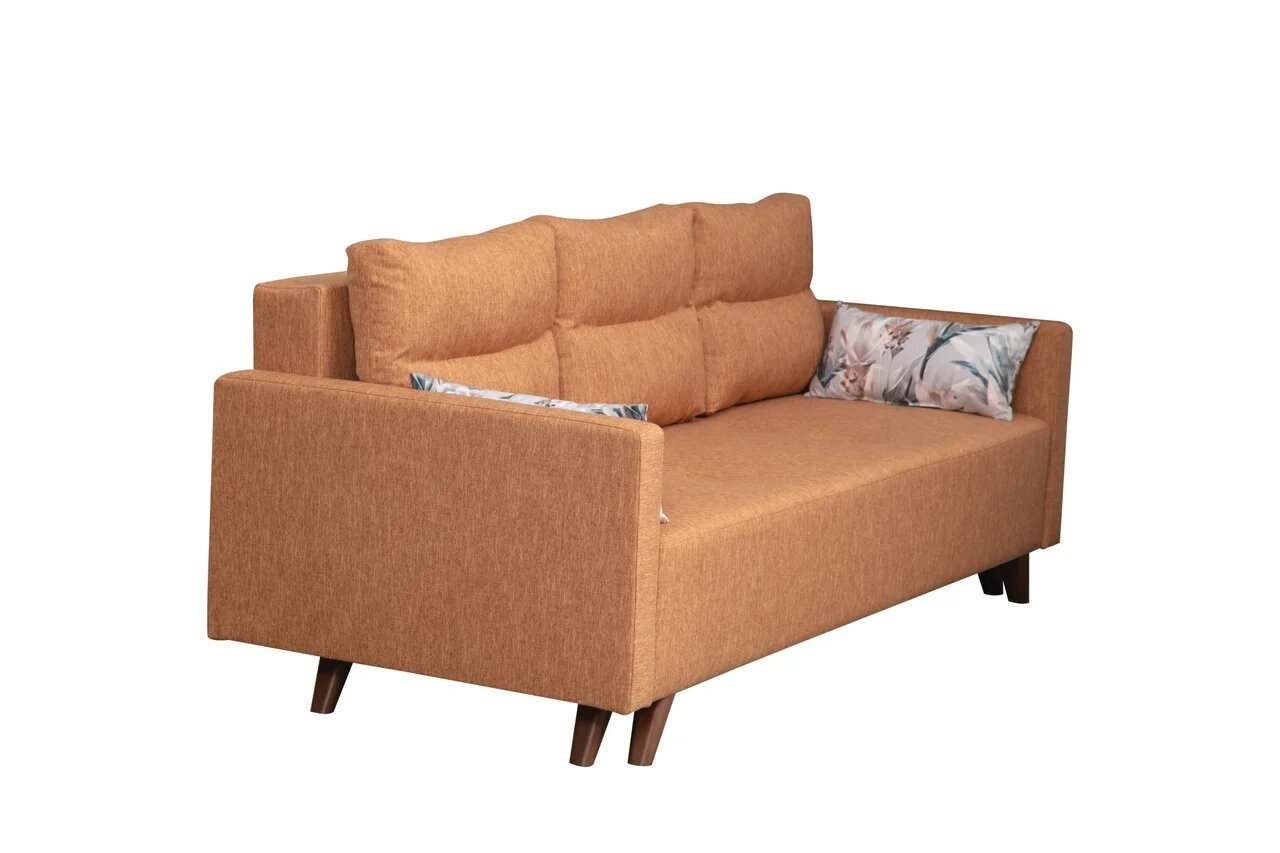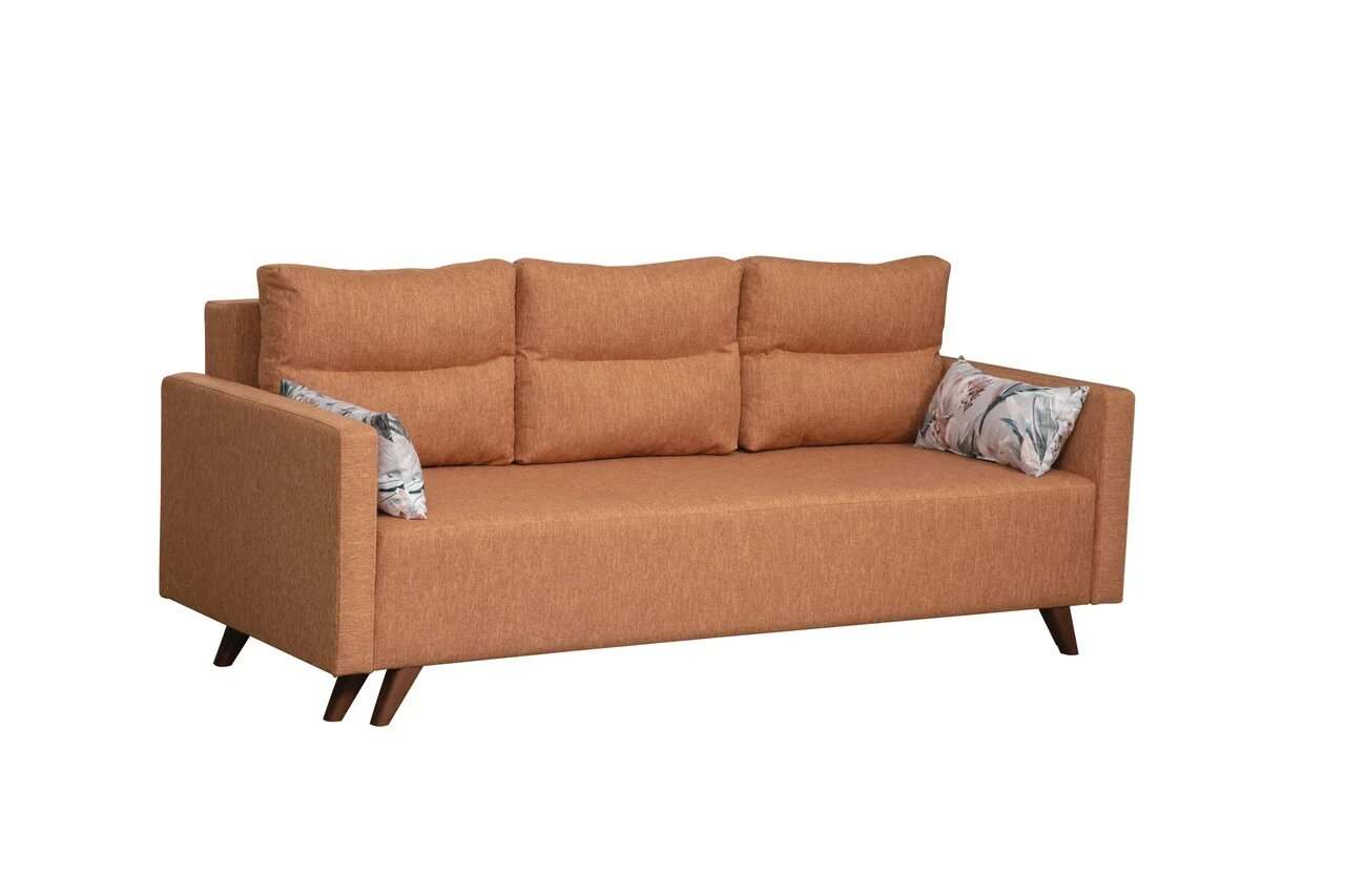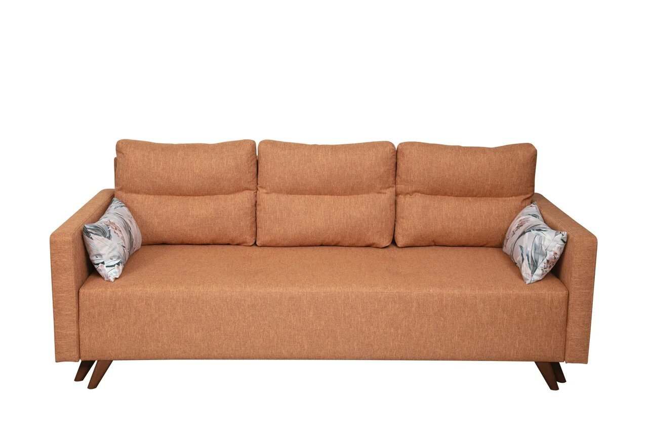 Диван-кровать «Каро» Рогожка флис терракотовый/думки микровелюр италия