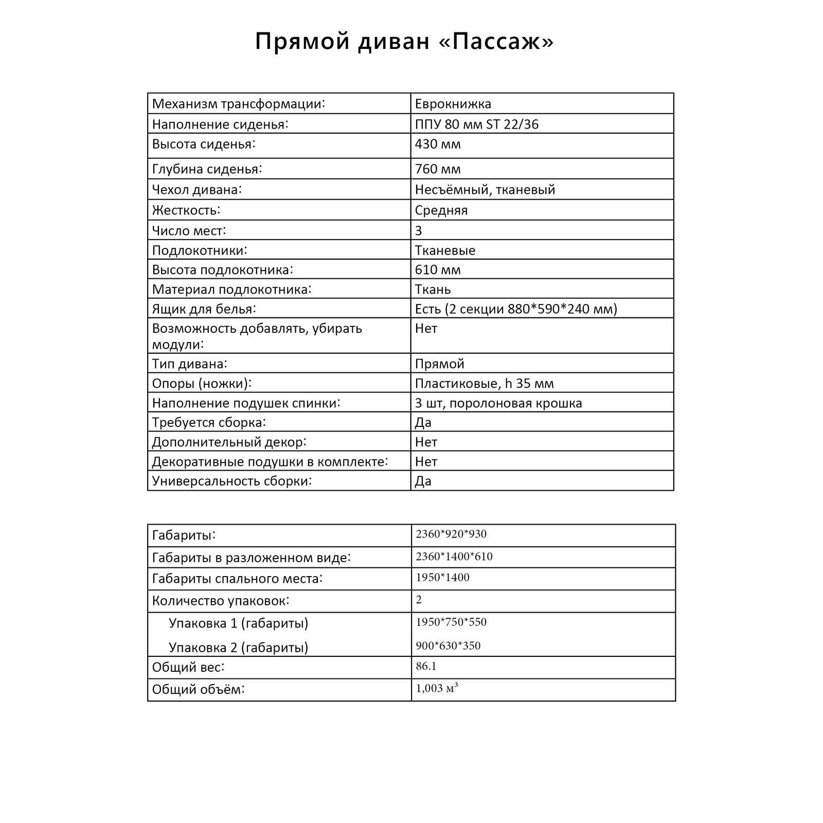 | Размер: ширина дивана, см | 92 |