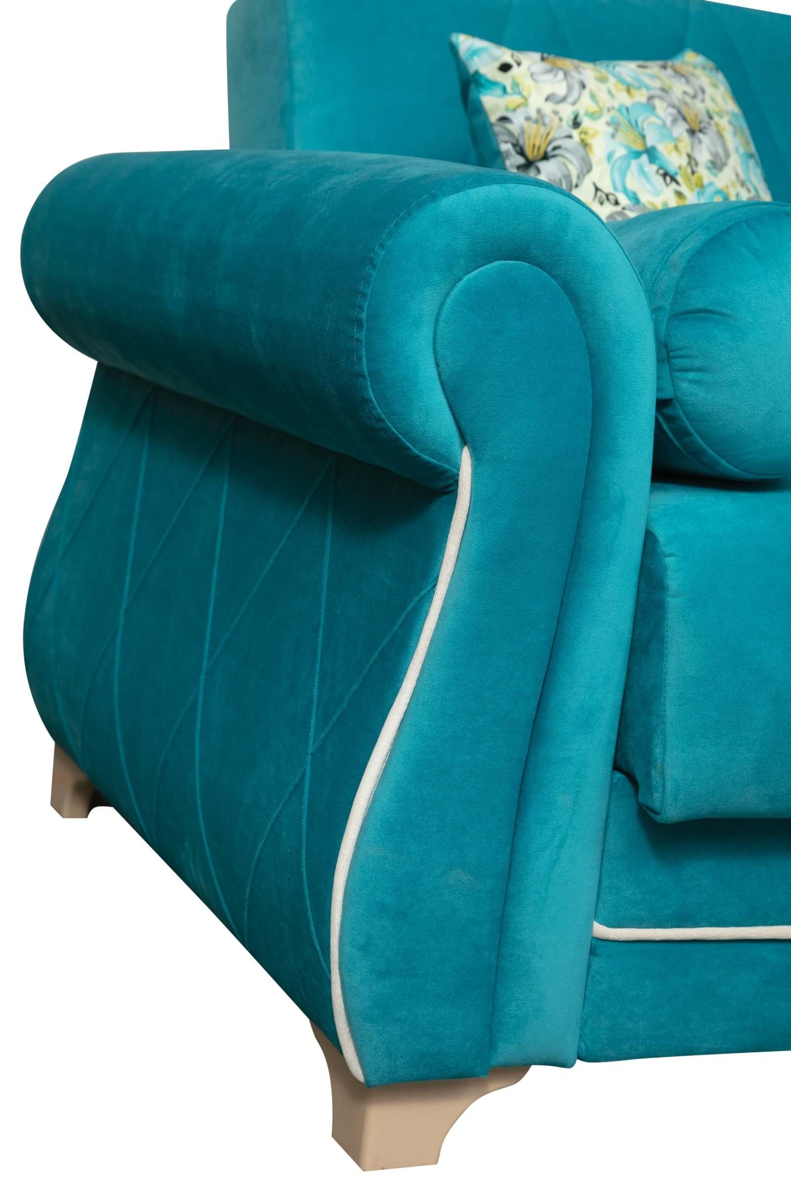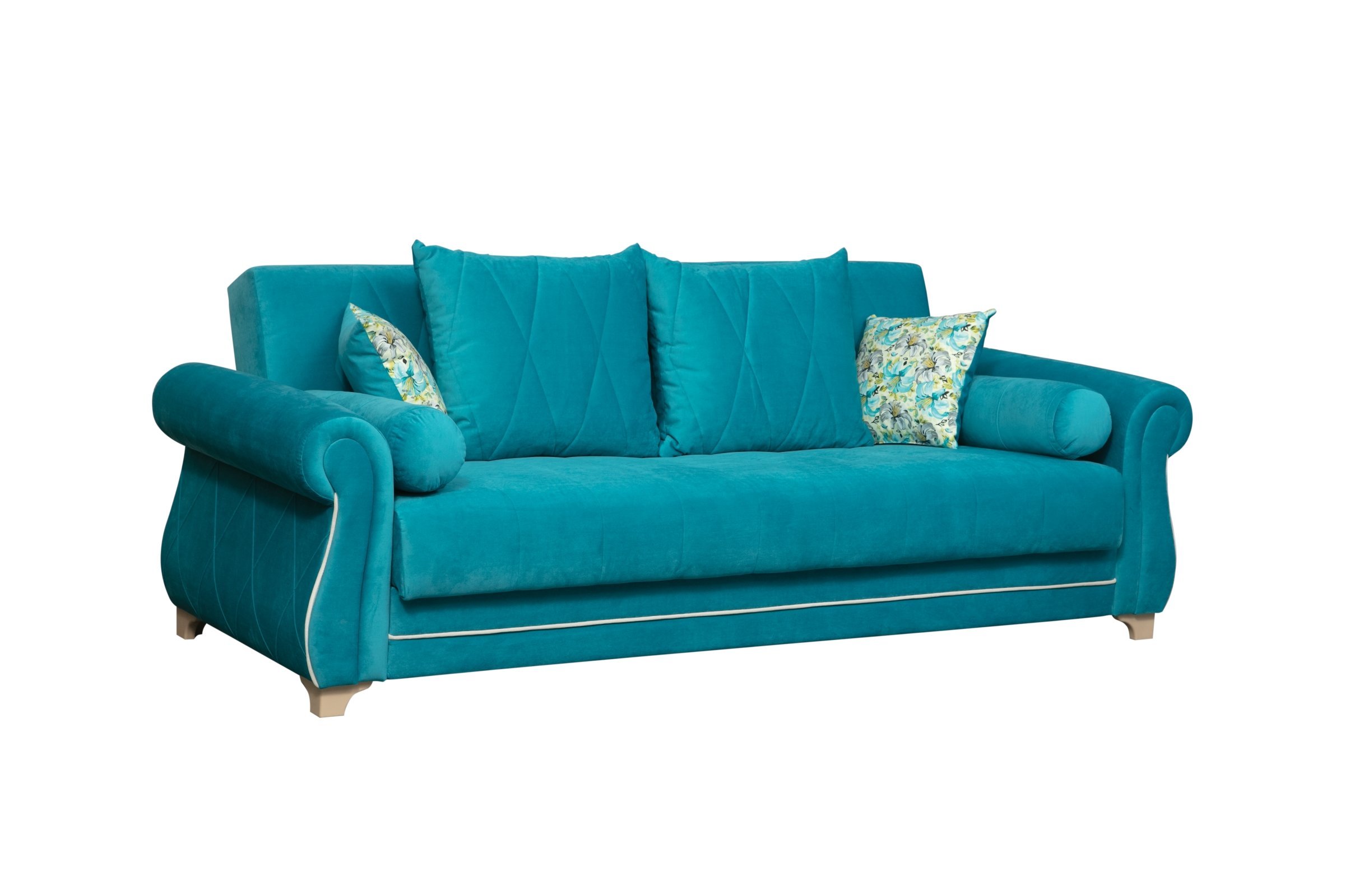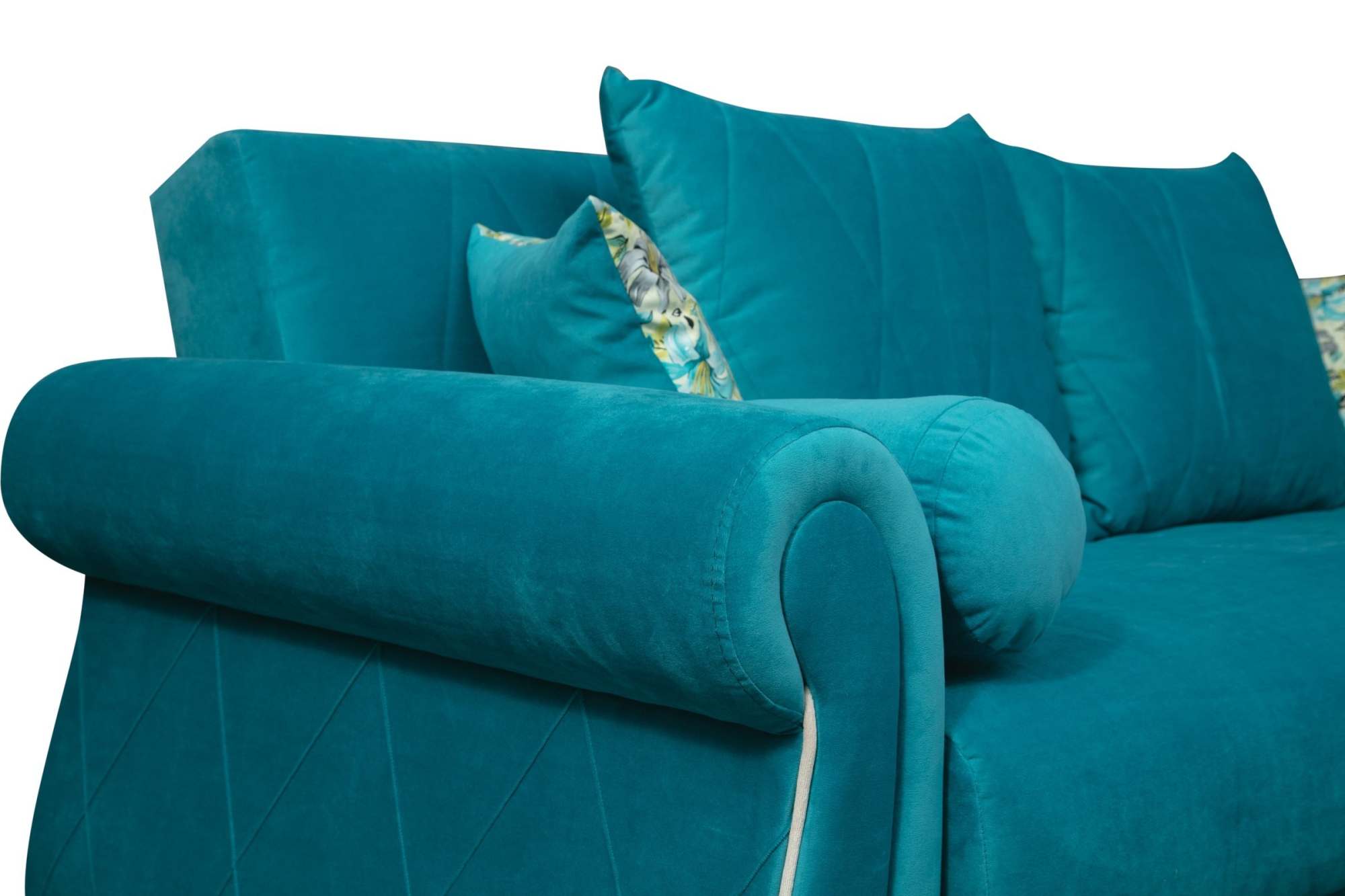 Диван-кровать «Порто» Велюр киви бирюза/Микровелюр цветы бирюза/Микровельвет кремовый