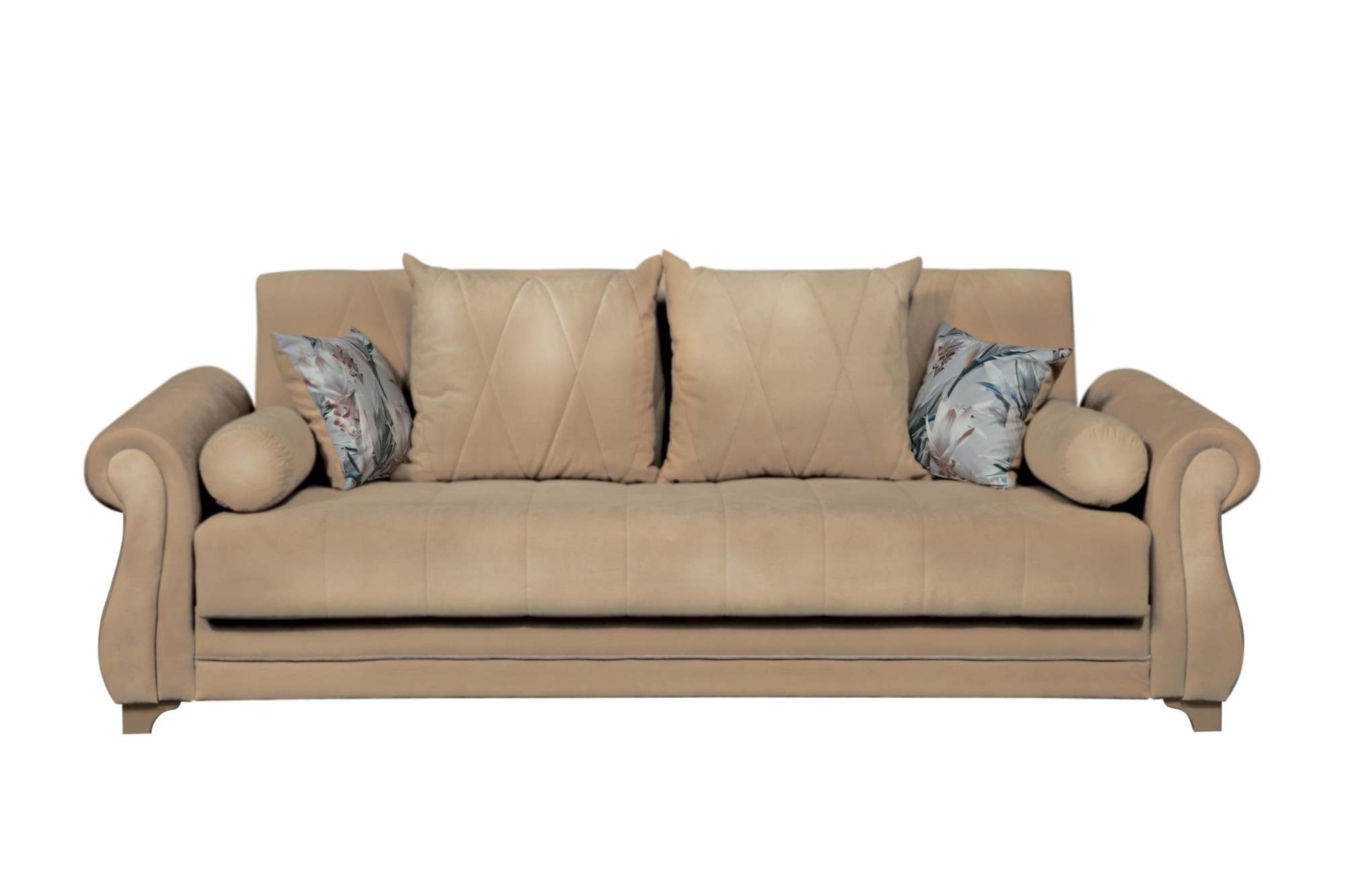 Диван-кровать «Порто» Велюр киви какао/Микровелюр италия/Микровельвет кремовый