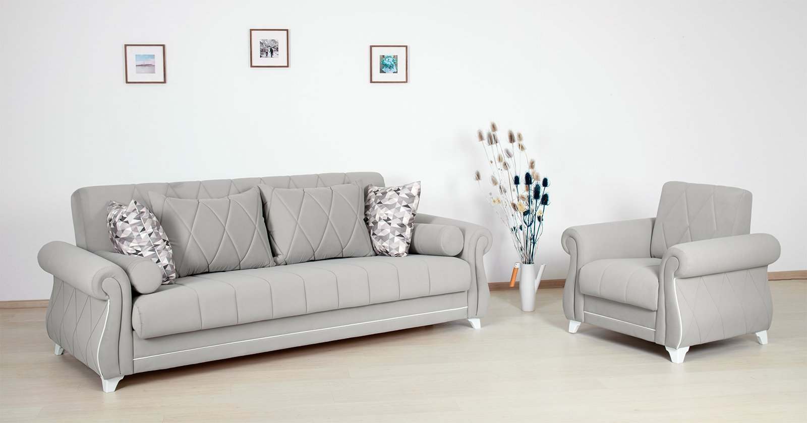 Диван «Роуз» 414 Прима лайт грей, 236x108x87 см