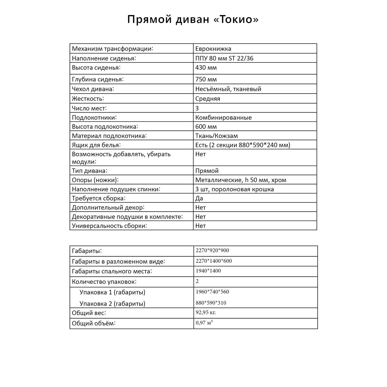 | Размер: ширина дивана, см | 92 |