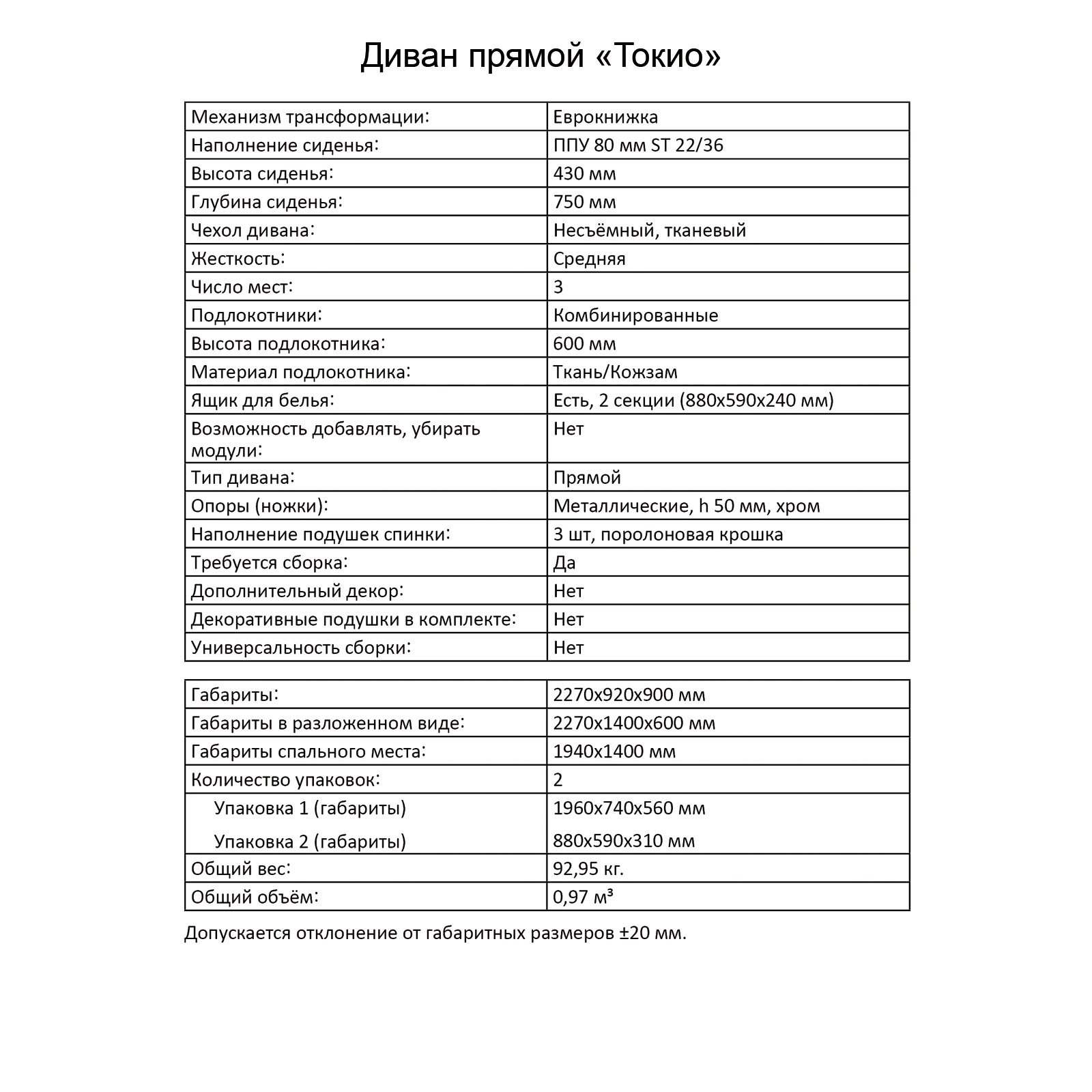 | Размер: ширина дивана, см | 92 |