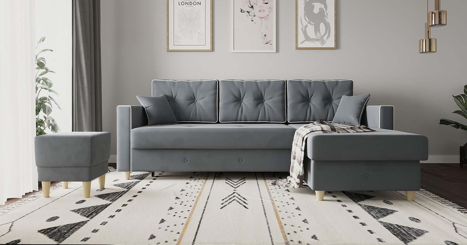 Диван-кровать угловой «Айрин» ТД 326 Велутто 32 стальной серый
