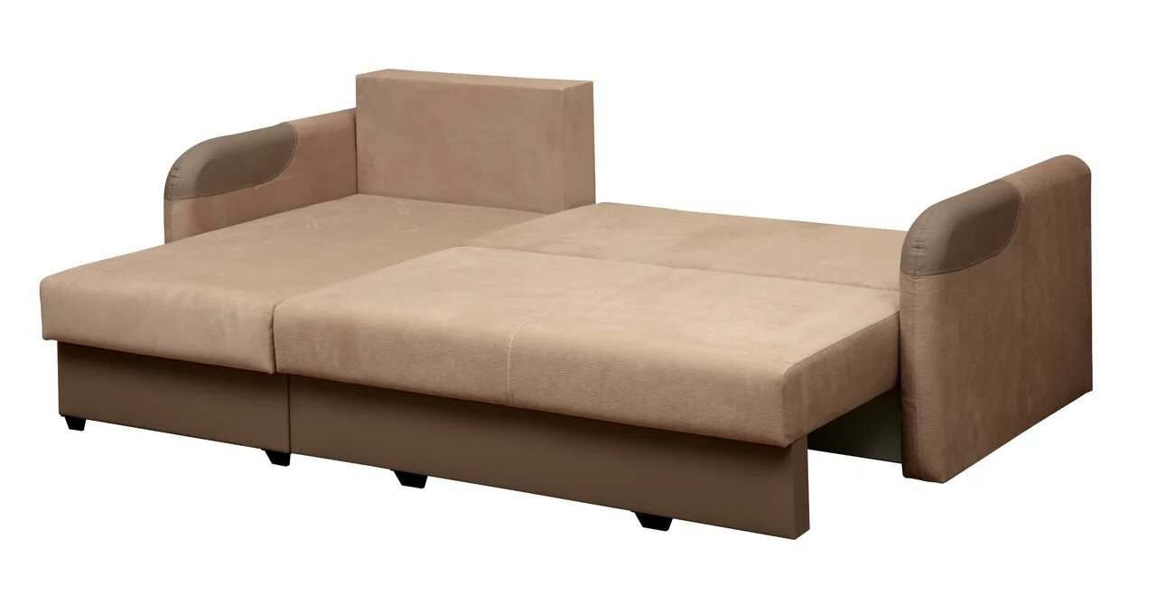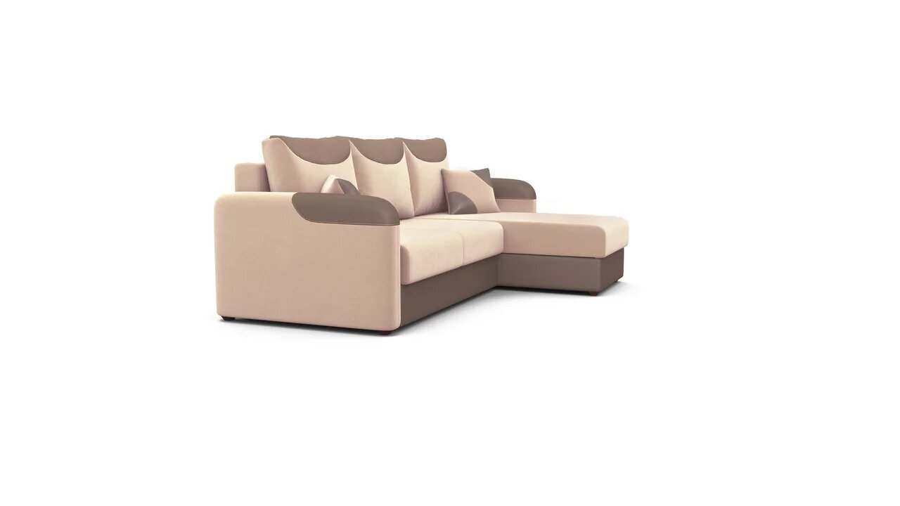 Диван-кровать угловой «Чикаго» Велюр текстура латте/кожзам латте