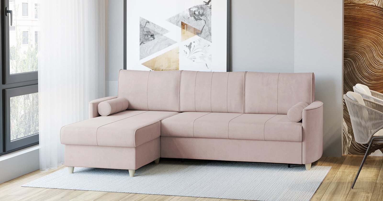 Диван-кровать угловой «Лора» ТД 330 Ультра роуз пудровый