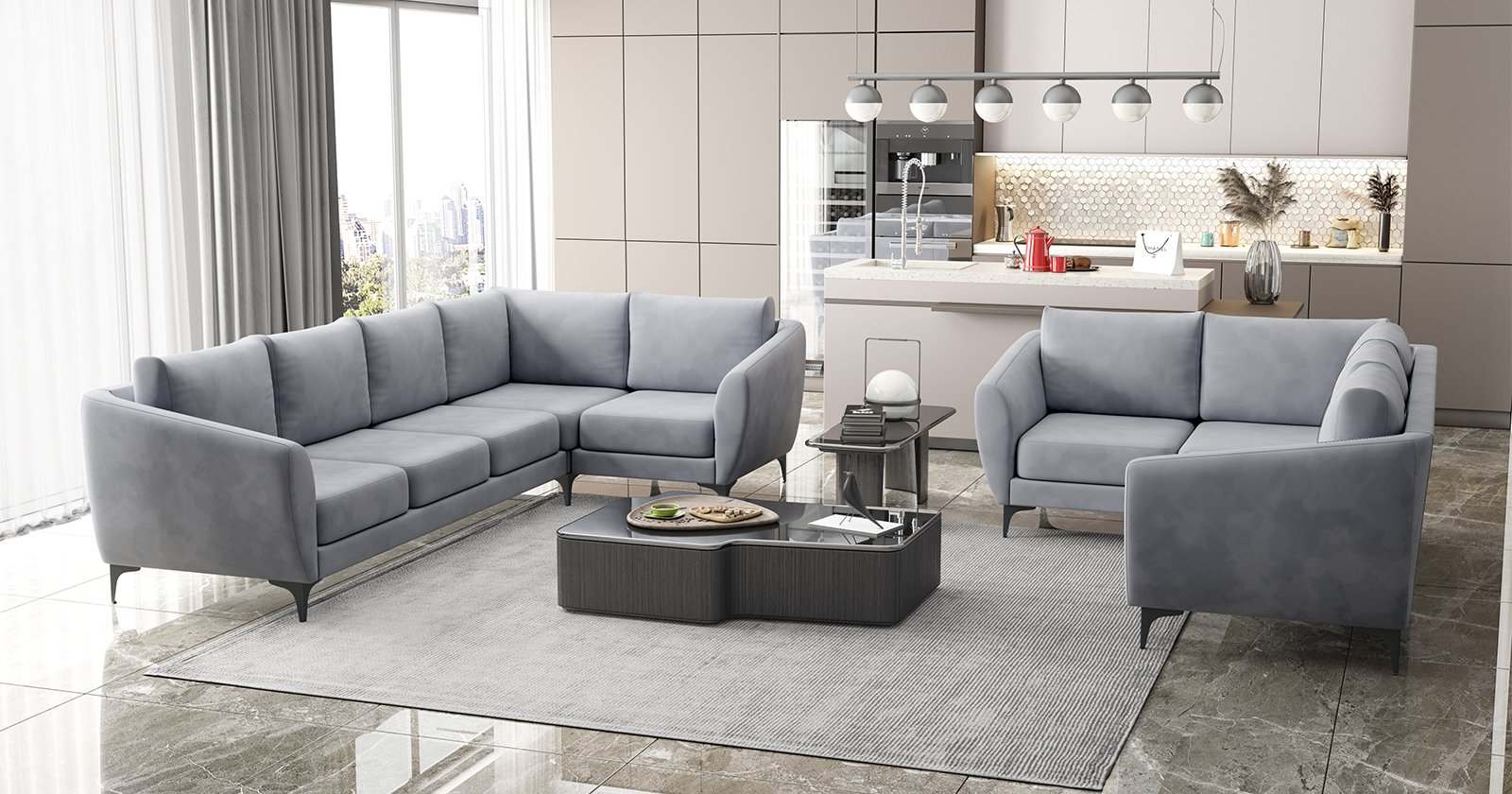 Диван трехместный угловой «Дана» Посейдон грей серый