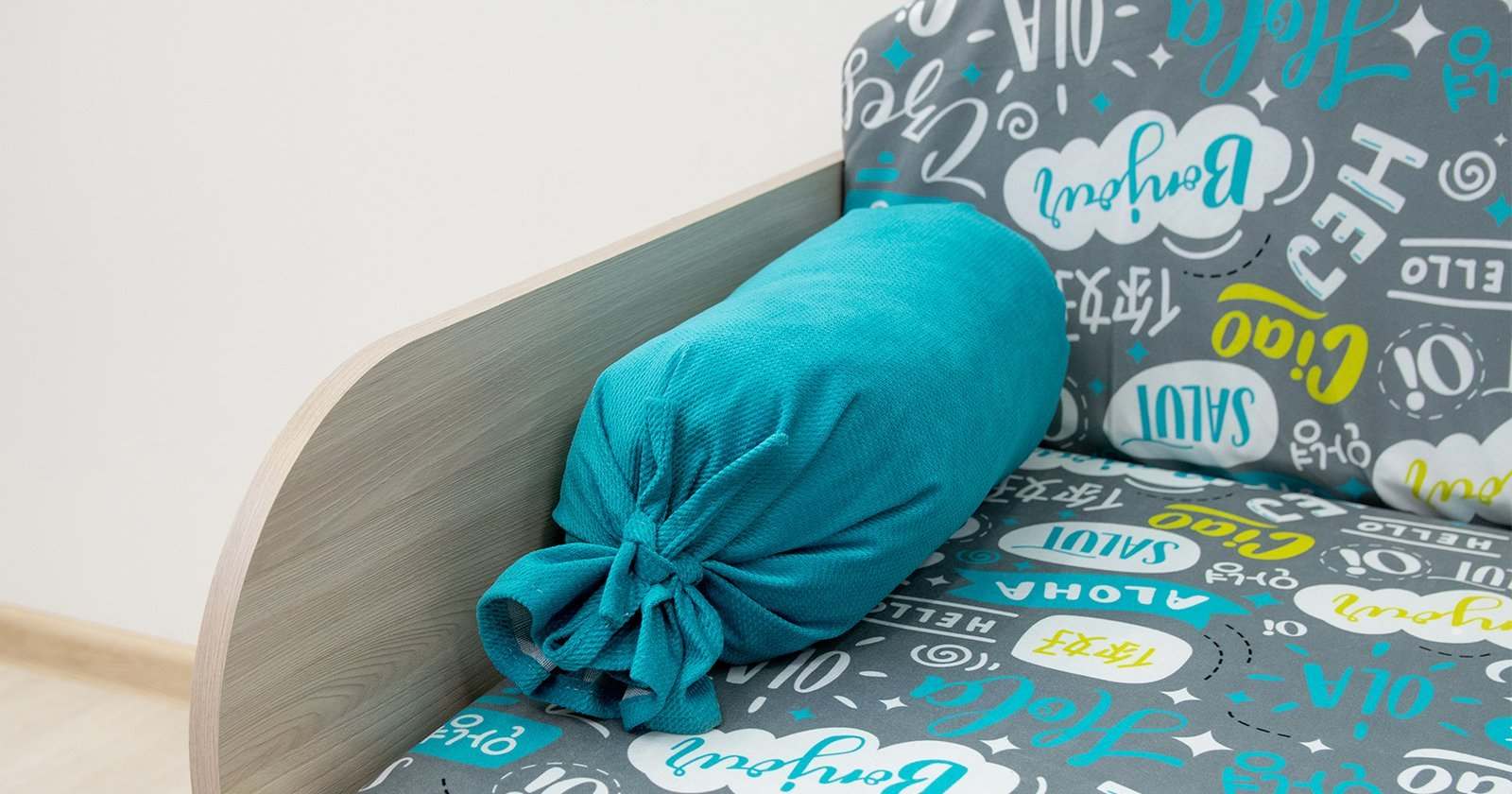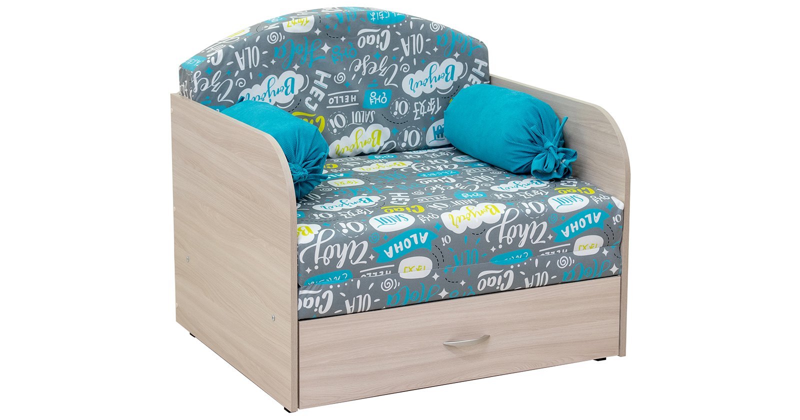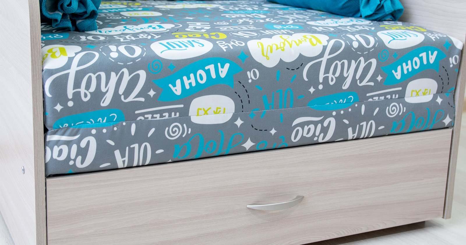 Детский диван-кровать «Антошка 1» 011 Фибра Чао серо-бирюзовый лайм