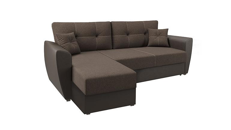 Диван-кровать угловой «София» Рогожка коричневая/кожзам коричневый