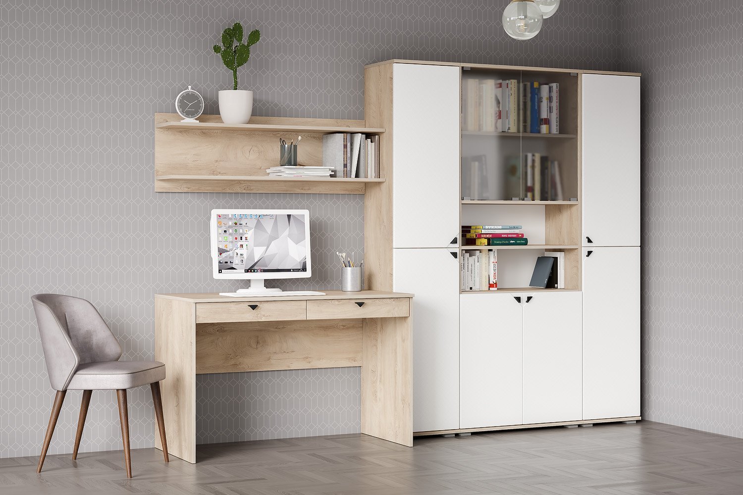 Домашний офис «Бостон» Дуб Эндгрейн/Милк Рикамо софт вариант 2