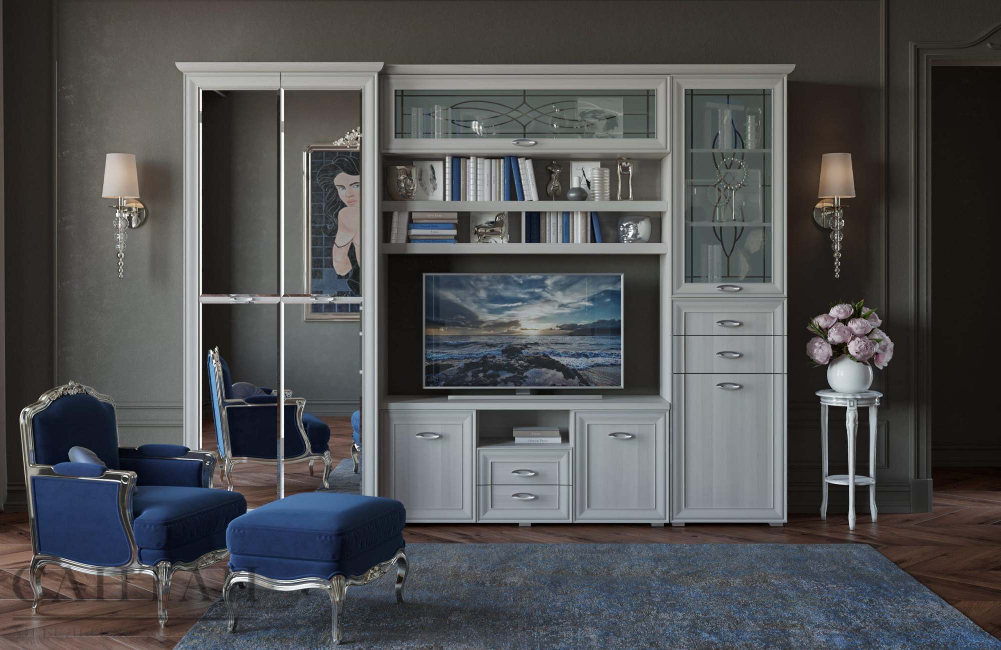 Гостиная «Эйми 5» Бодега белая патина/Серебро
