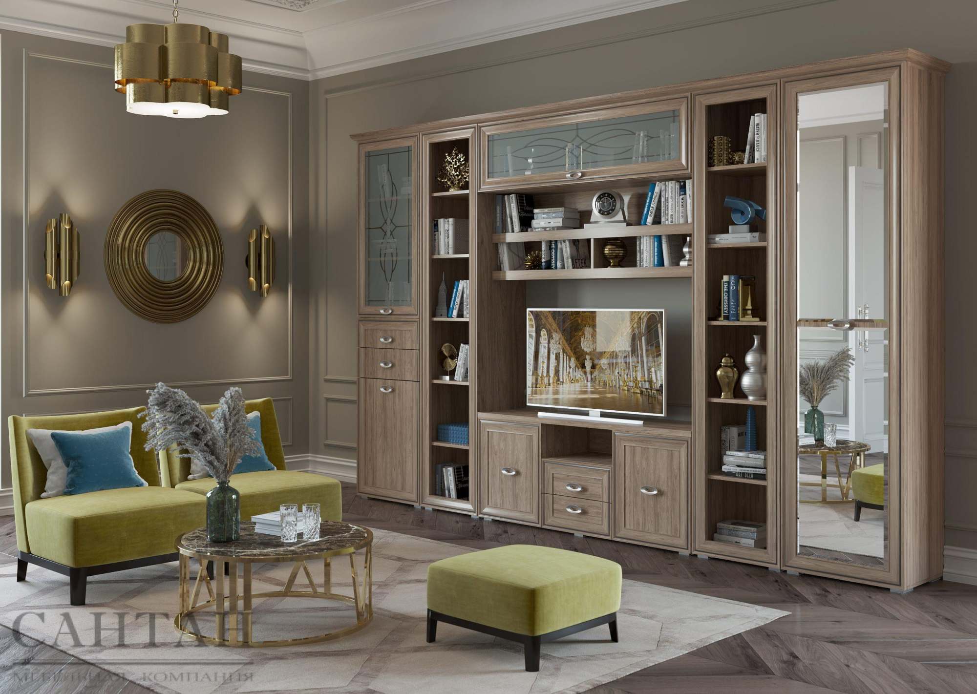 Гостиная «Эйми 6» Гикори Джексон светлый патина/Орех