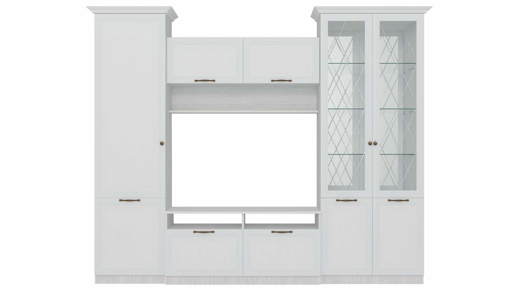 Гостиная «Гармония 7» МДФ Белое дерево/Холст белый/Рамух Вариант 4