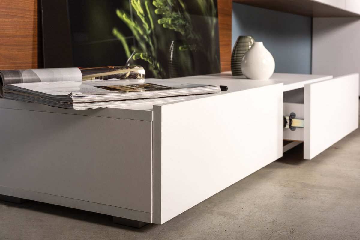 Тумба под телевизор «Гринвич» Орех Селект Каминный/Белый премиум