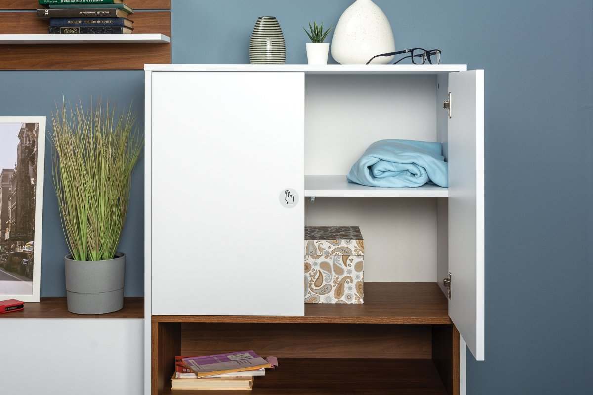 Шкаф навесной 1 дверь «Гринвич» 08.117 Орех Селект Каминный/Белый премиум