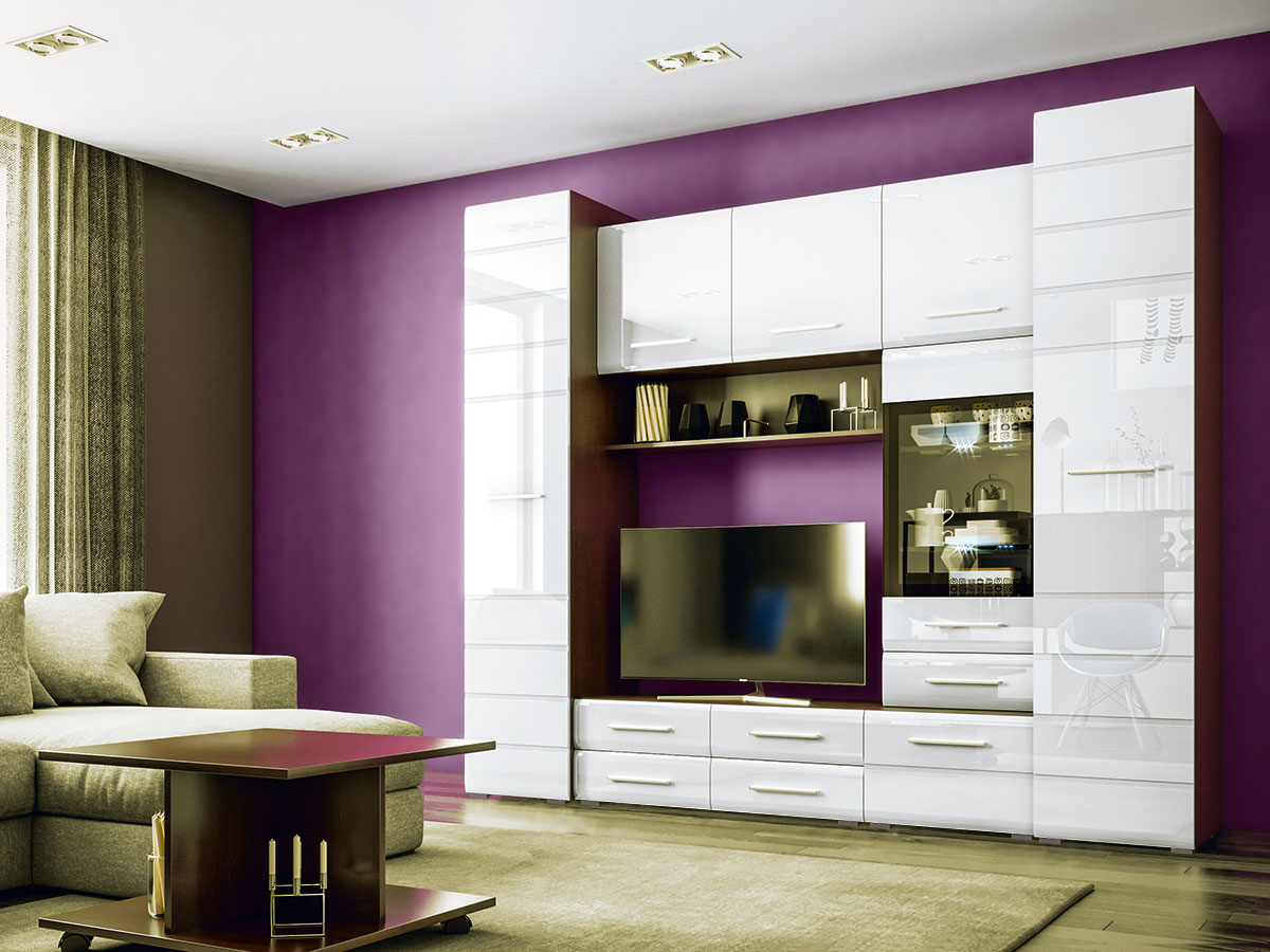 Гостиная «Инесса New» Белый глянец/Дуб Венге