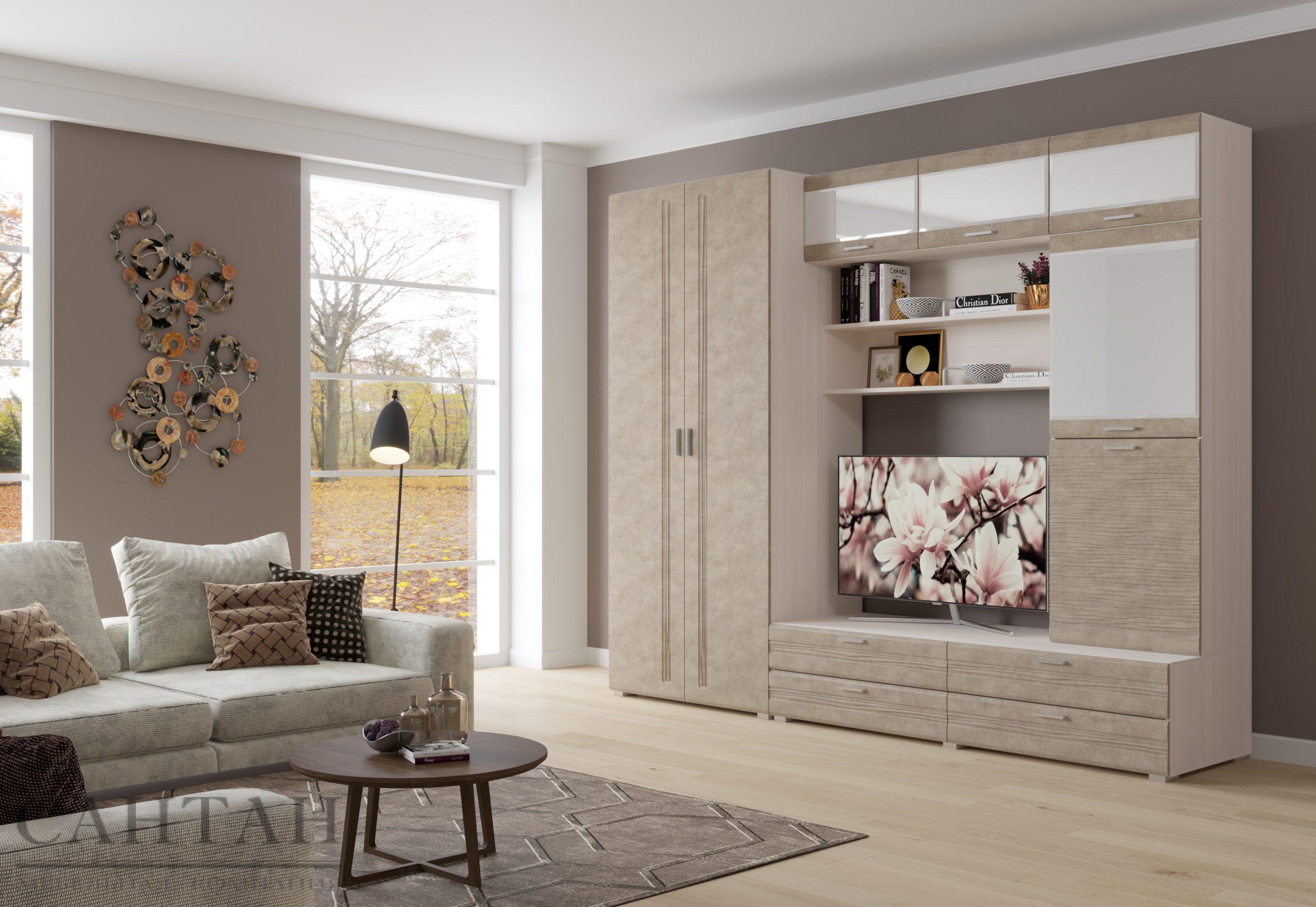 Гостиная «Лотос 24» Бодега белая/Бетон бежевый