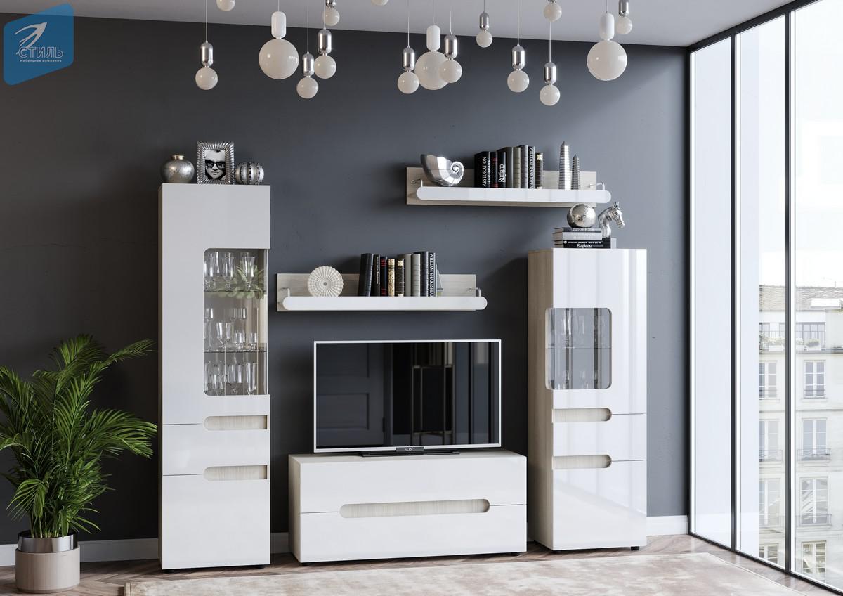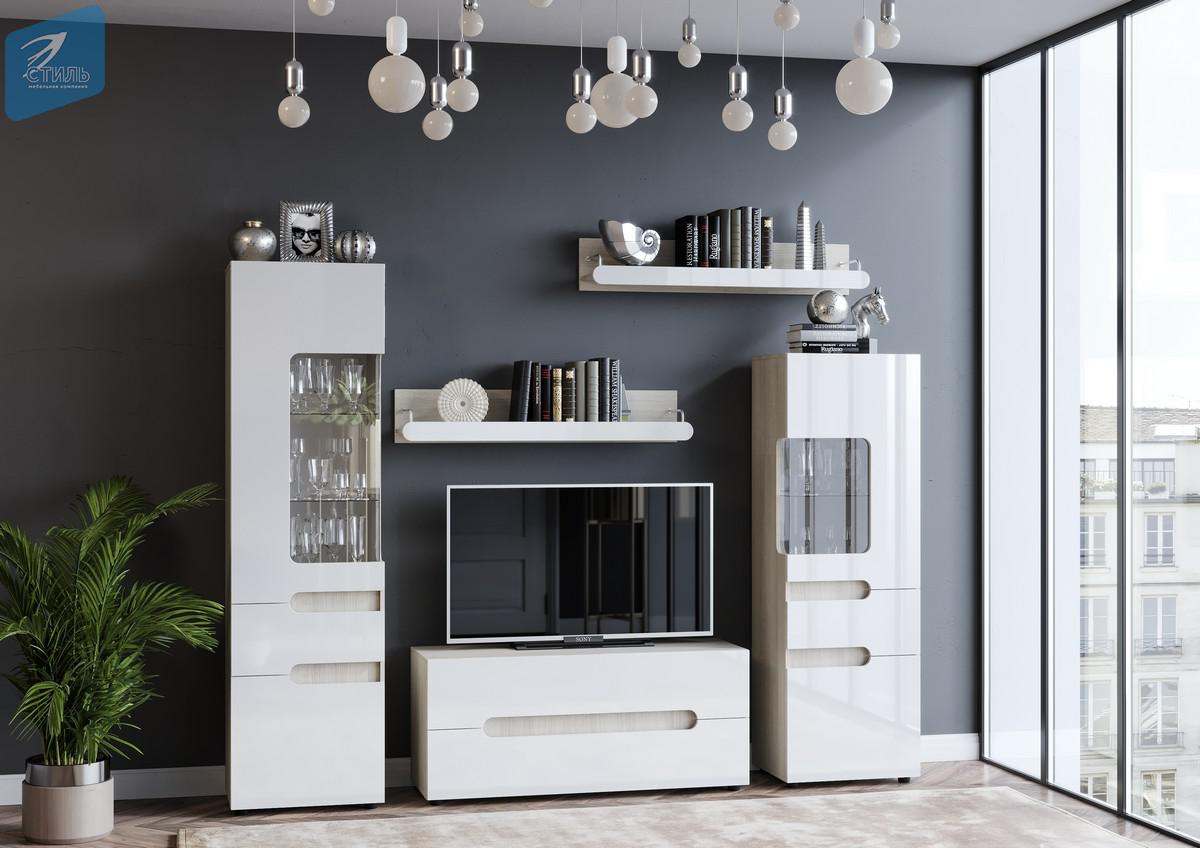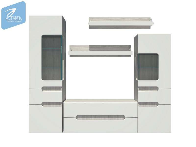 Гостиная «Палермо-3» Ясень Шимо светлый/МДФ Белый глянец