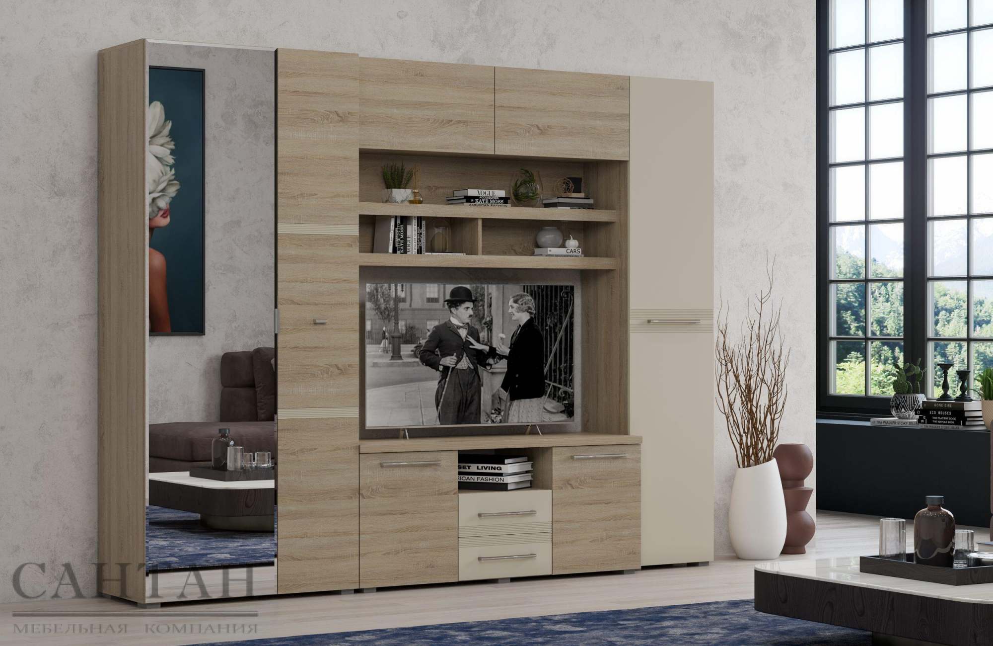 Гостиная «Панна-котта 7» Дуб сонома/Панна котта