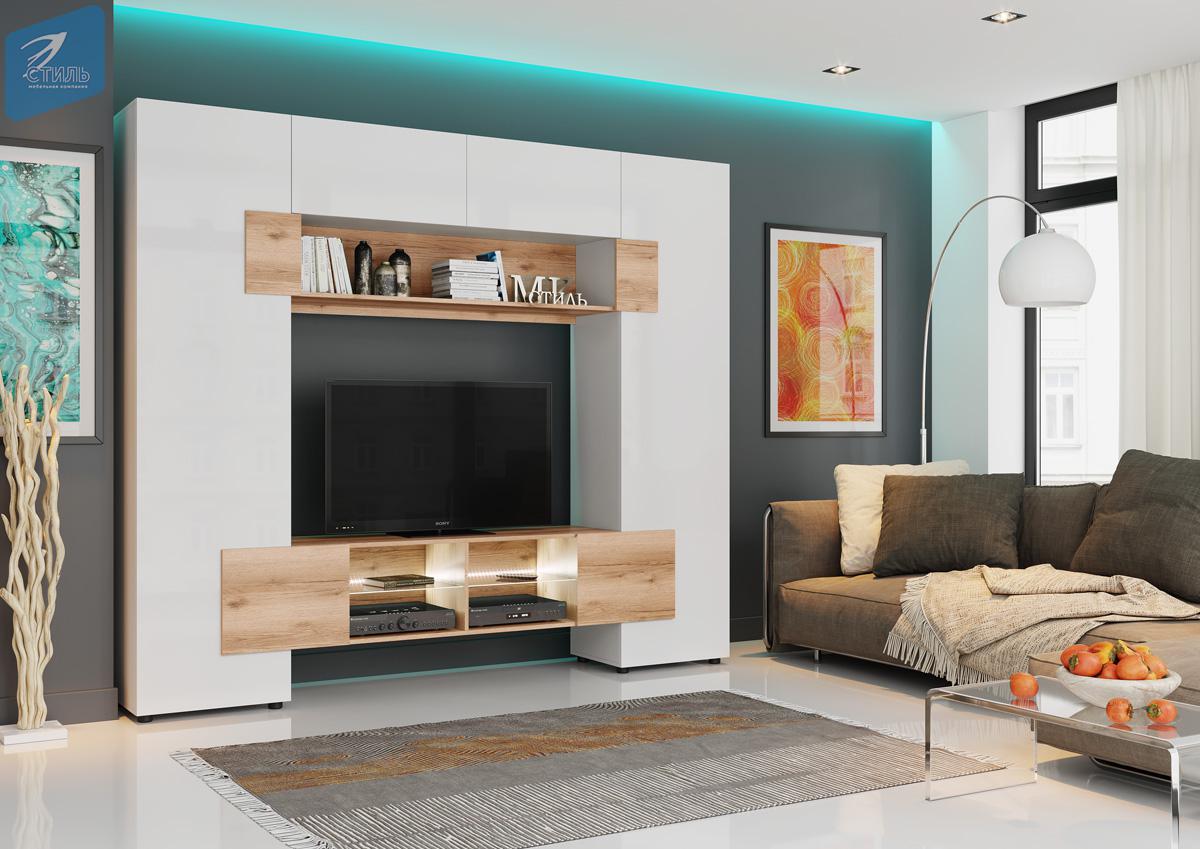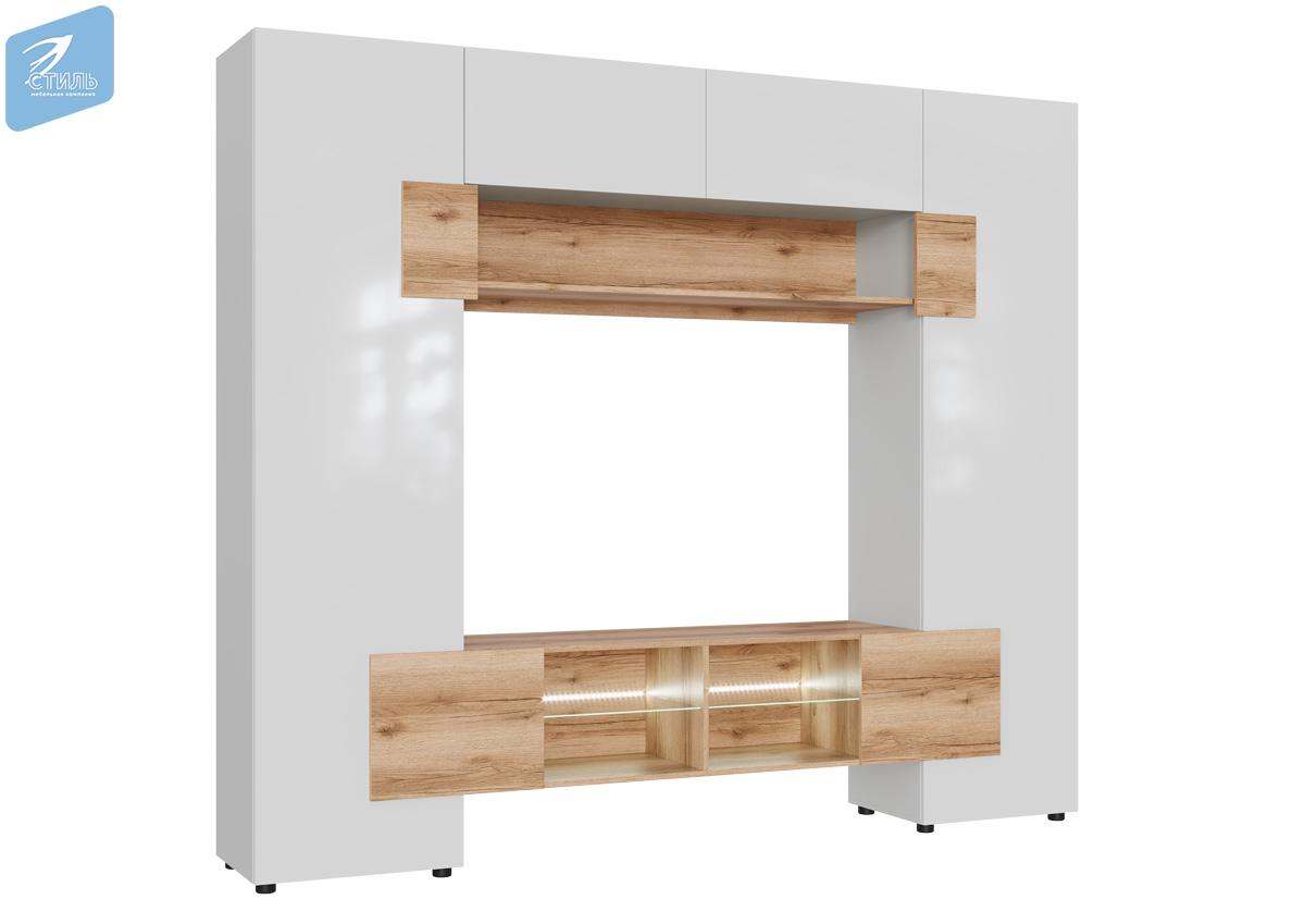 Гостиная «Ривьера» Дуб Крафт золотой/МДФ Белый глянец