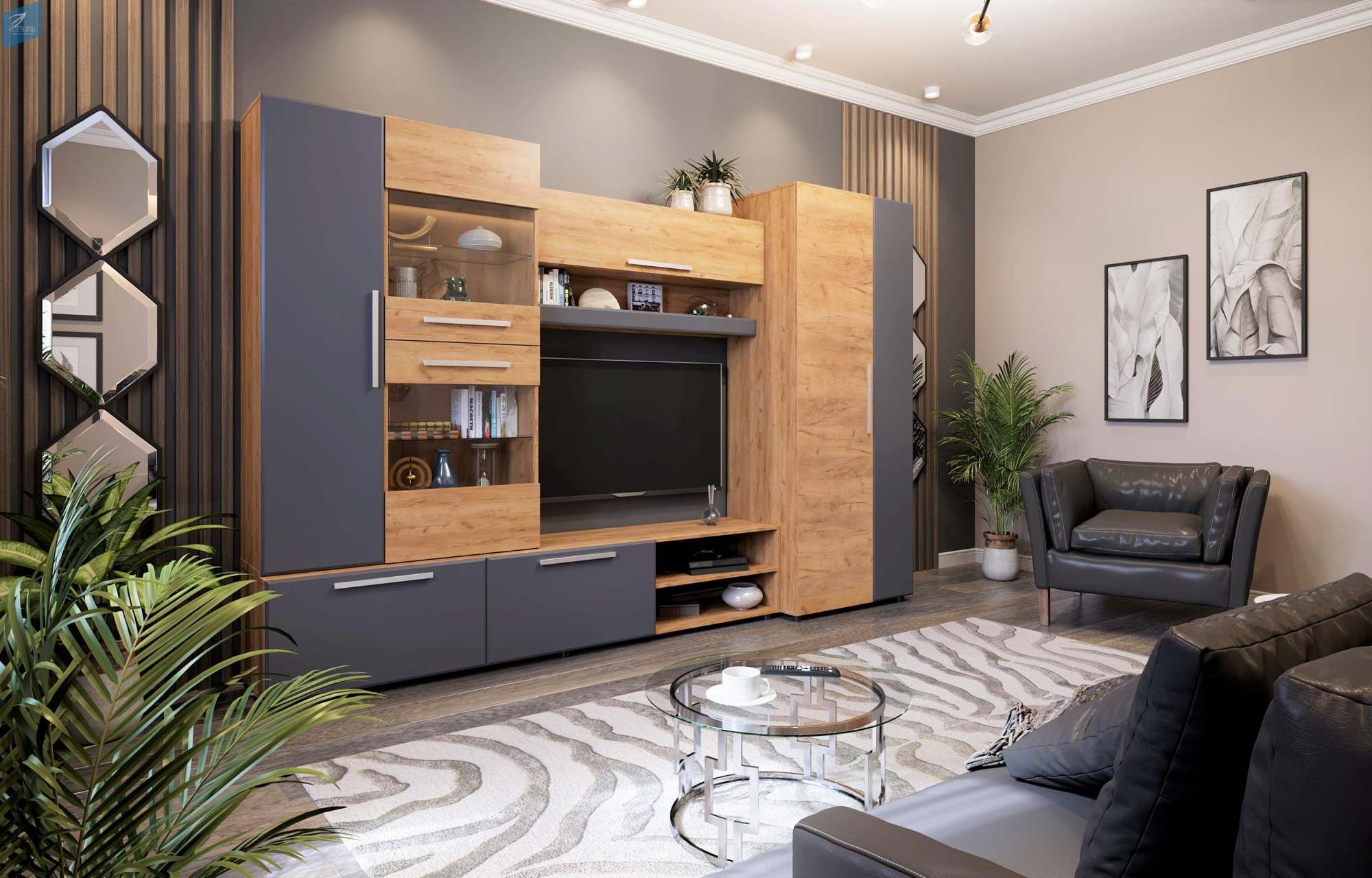 Гостиная «Сафари» Дуб Крафт золотой/МДФ Графит Софт матовый