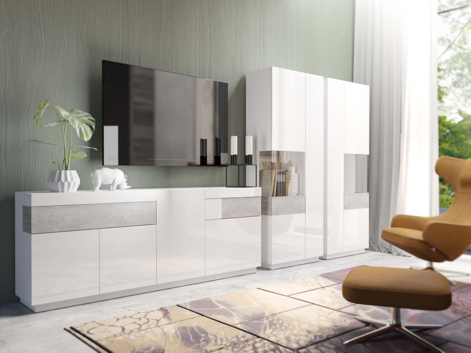 Гостиная «Silke» 2484GY Белый глянец/Колорадо бетон
