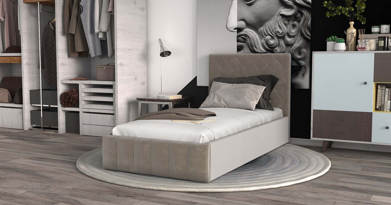 Интерьерная кровать одинарная «Милана» Велюр Лекко фог