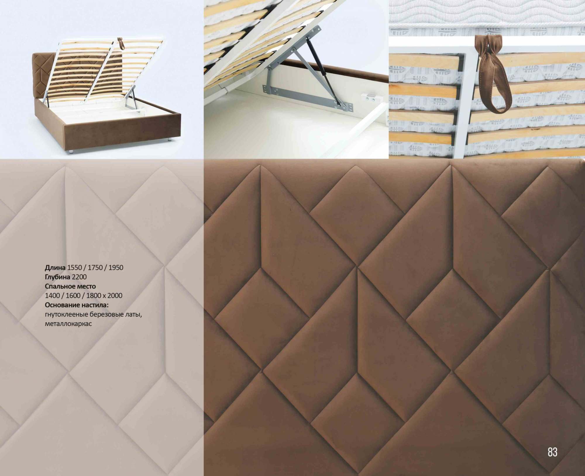 | Изголовье | С изголовьем, С мягким изголовьем, С высоким изголовьем |
