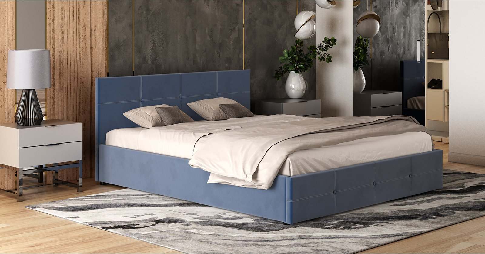 Интерьерная кровать «Синди» Велюр Мазерати 21 серо-синий