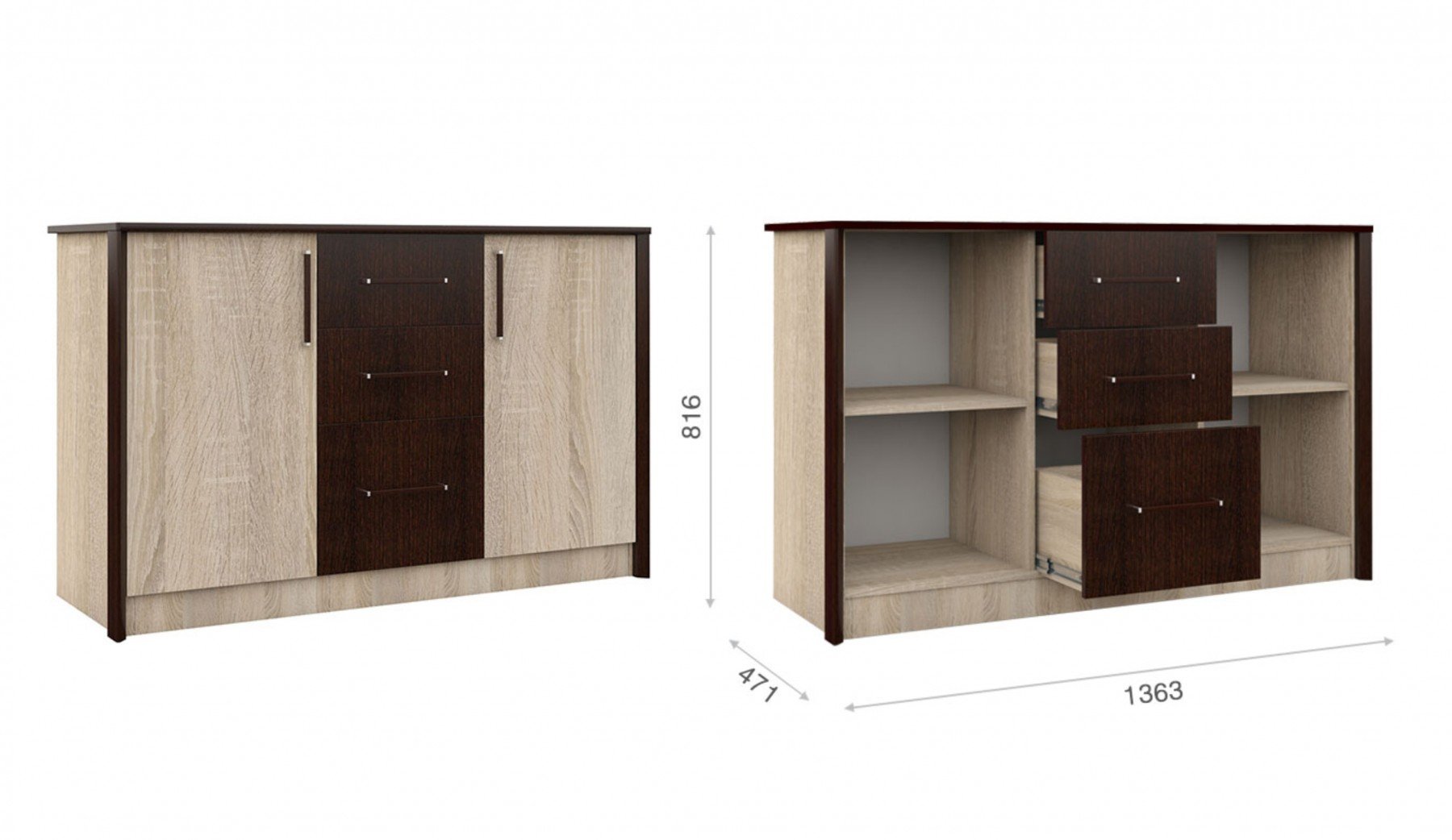 Комод 136 «Эшли» Венге/Дуб Сонома