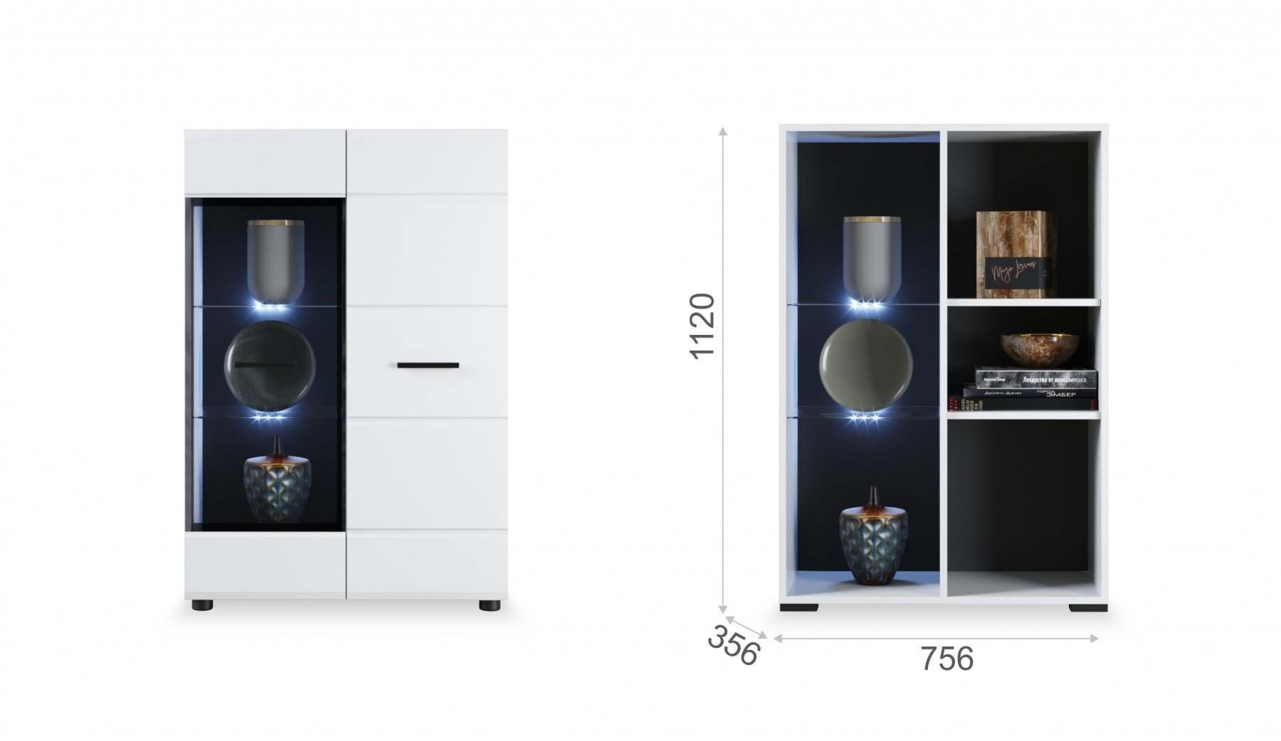 Комод 1д1в «Йорк» Белый жемчуг/Белый глянец