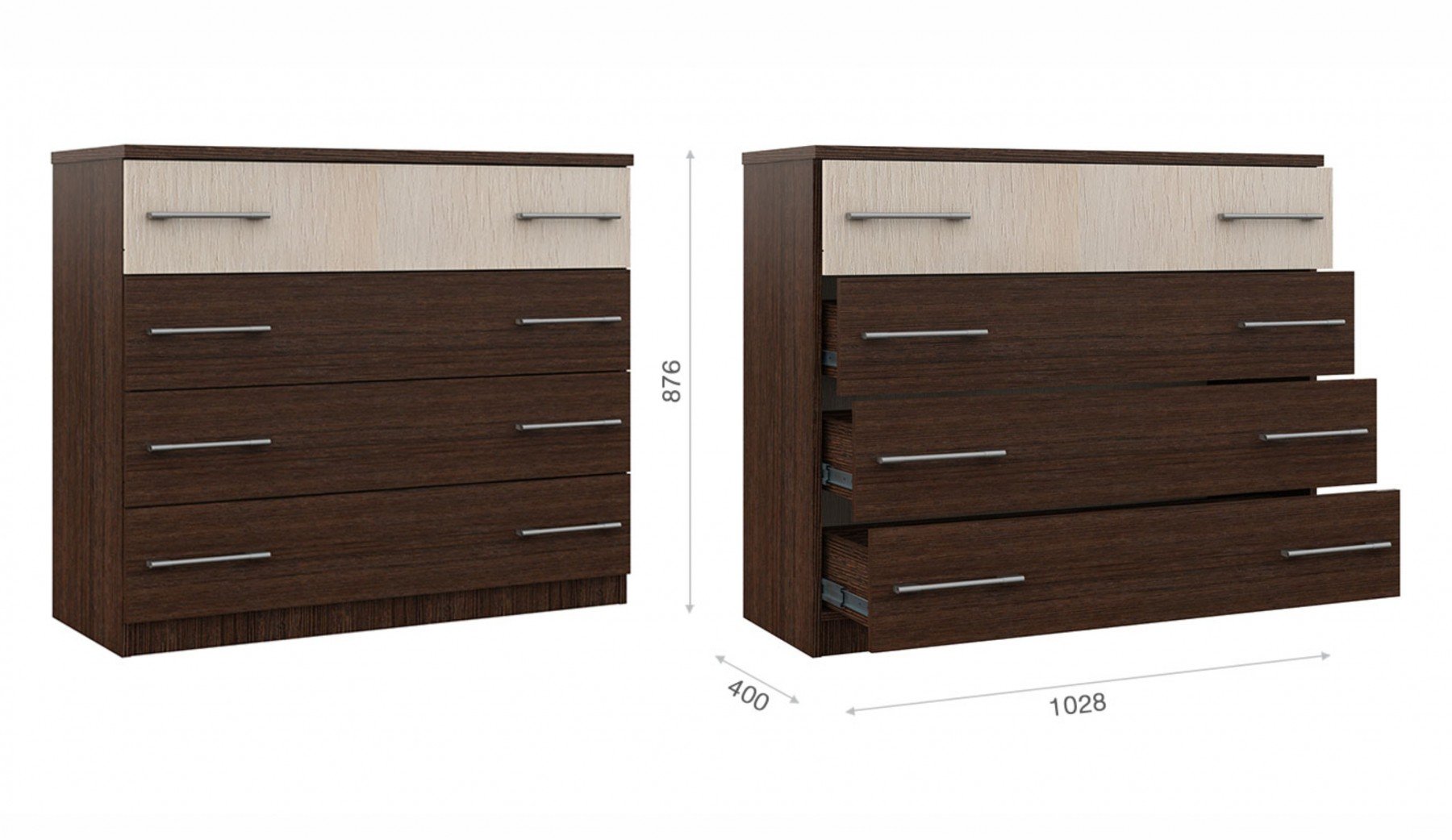 Комод 4 ящика «Аврора» Венге/Дуб молочный