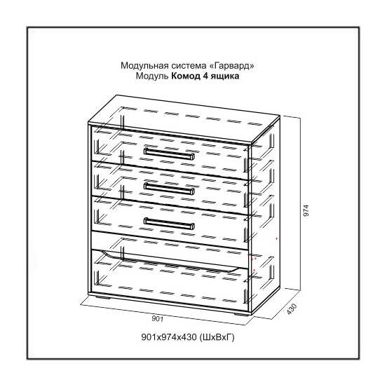 | Количество ящиков комода | 4 ящика |
