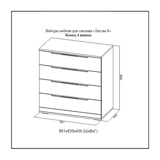 | Количество ящиков комода | 4 ящика |