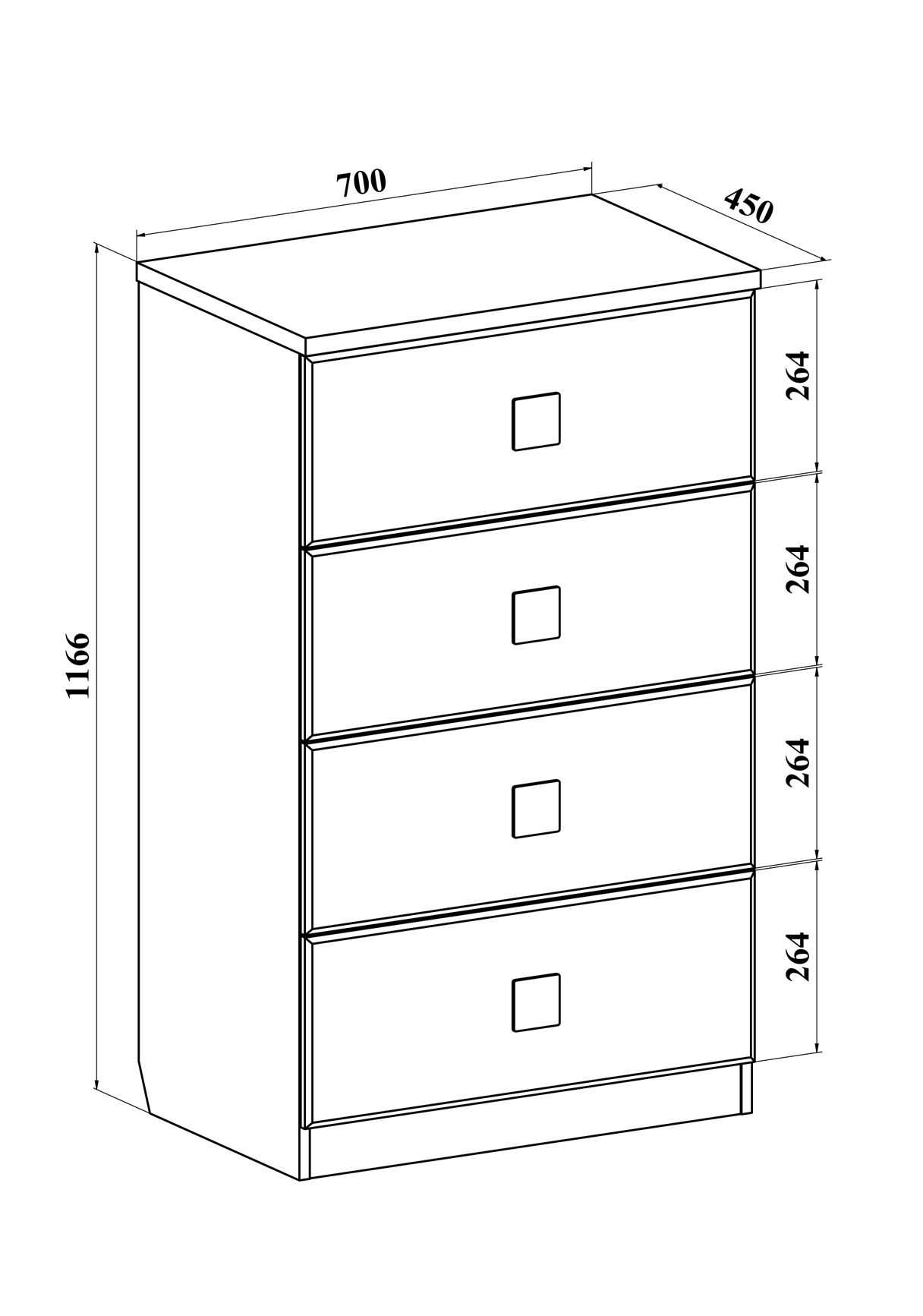 | Количество ящиков комода | 4 ящика |