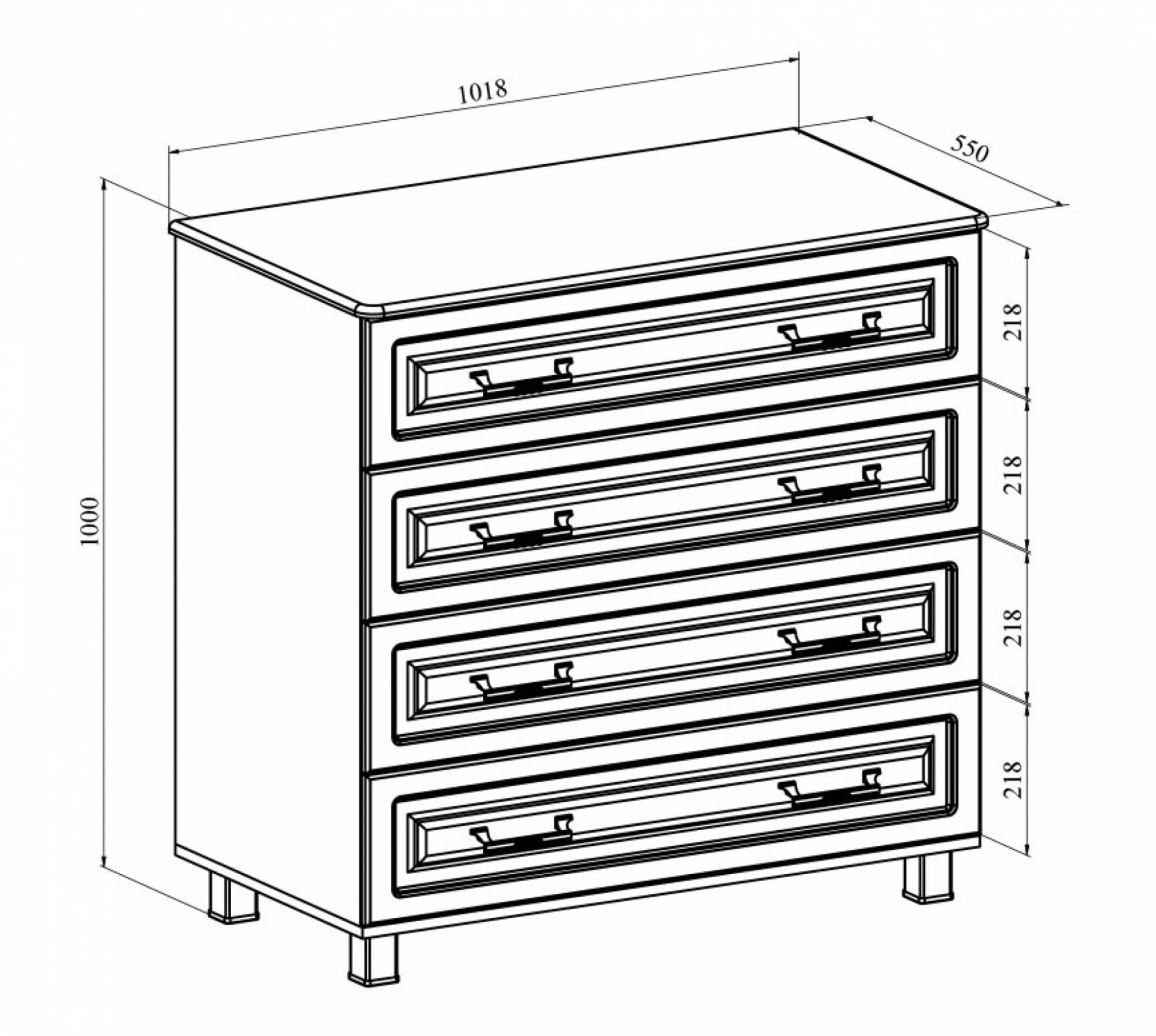 | Количество ящиков комода: | 4 ящика |