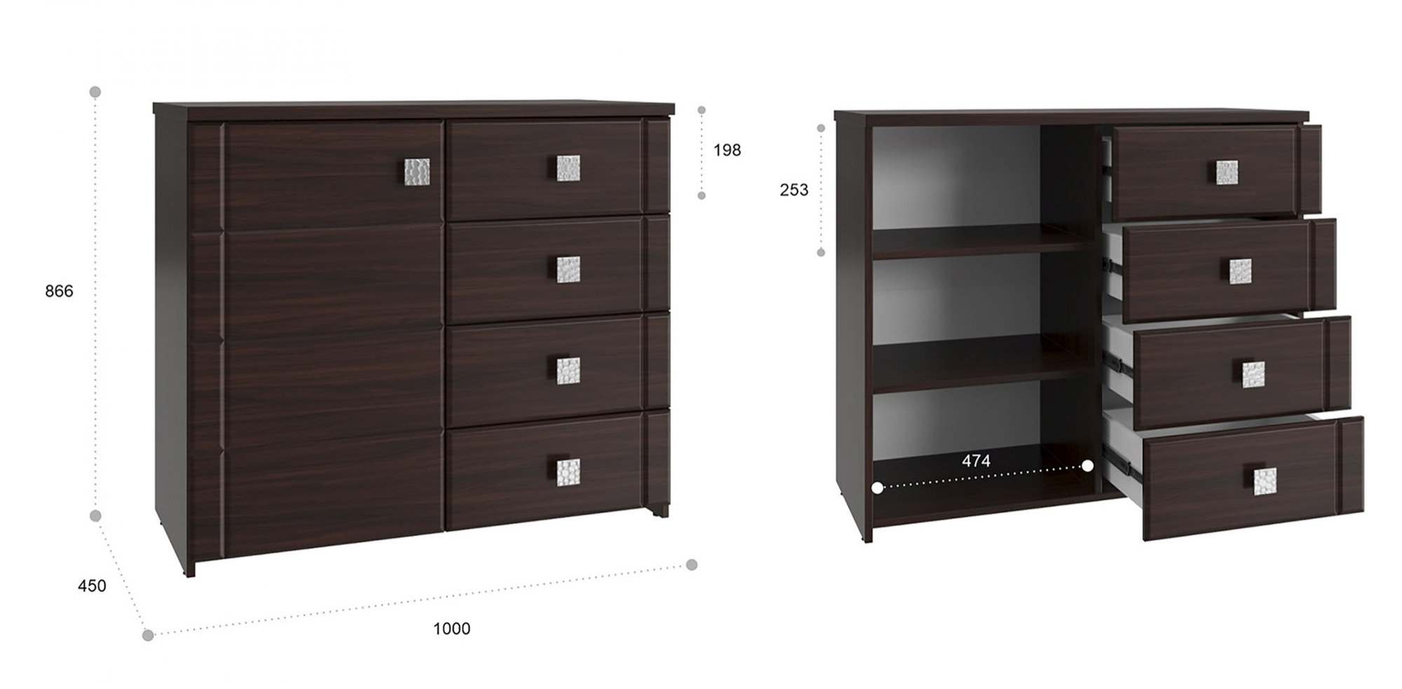 | Количество ящиков комода | 4 ящика |