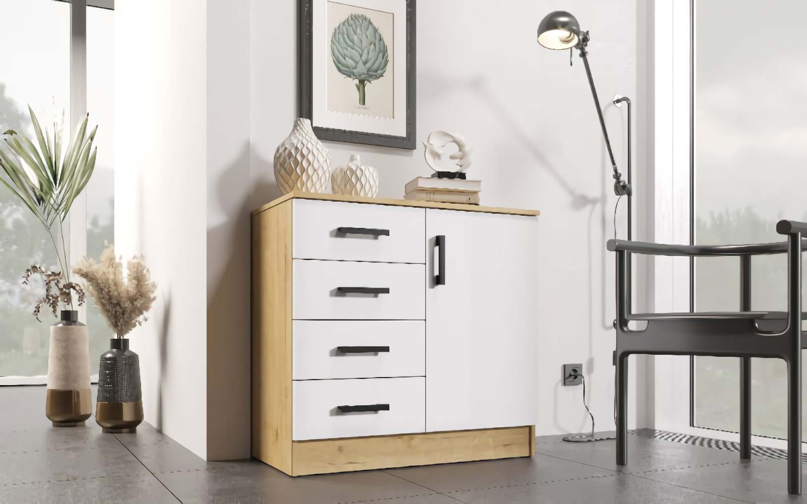 Комод «К800-1Д» Дуб Вотан/Белый гладкий