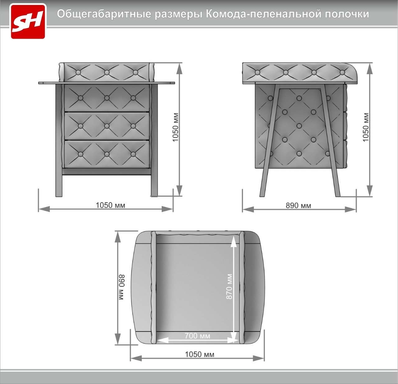 | Количество ящиков комода | 3 ящика |