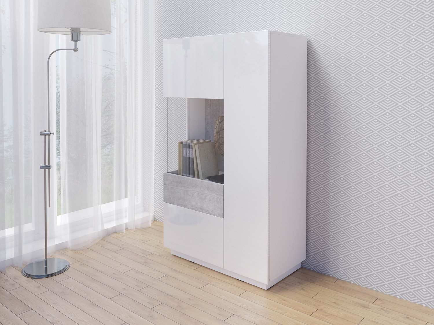 Комод «Silke» 2D-L 2484GY typ 42 Белый глянец/Колорадо бетон